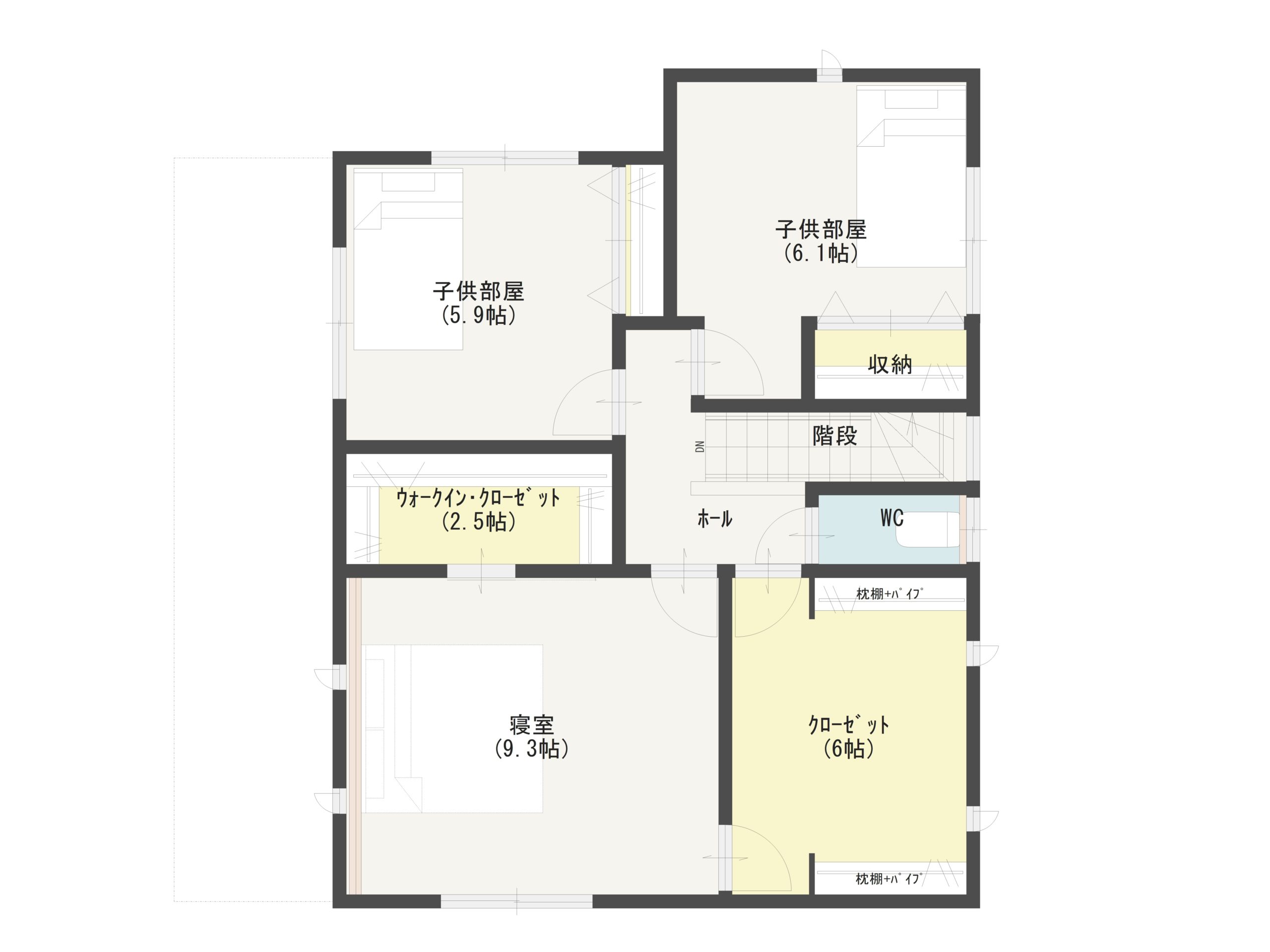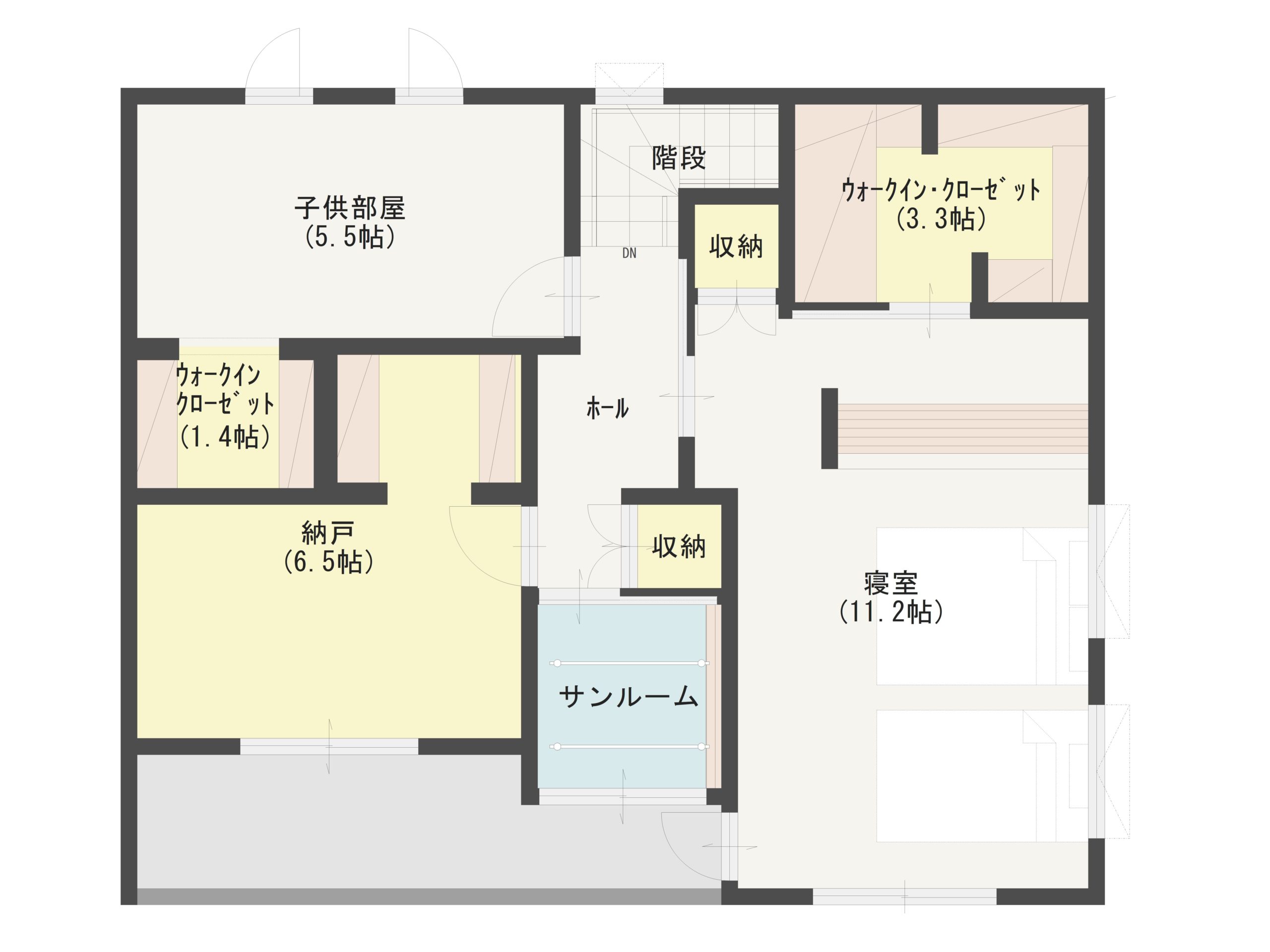 - 天井を高めにするなどスペースを広く取る