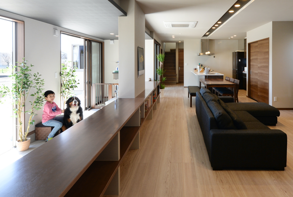 家族構成は夫婦と子供2人、そして犬です。ここでは、愛犬と快適に過ごすための事例を紹介します。