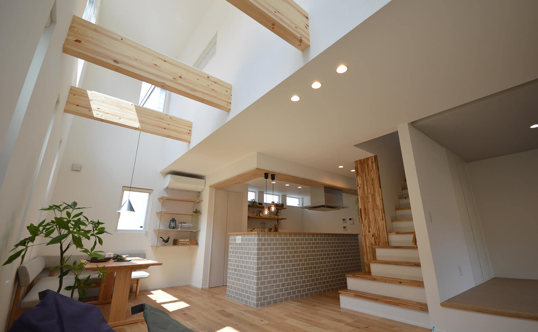 なので、例えばリビングのような、多くの人が長い時間を一緒に過ごす場所に床暖房を導入するのがおすすめです。「吹抜けや高天井を計画している」「でも冬場の寒さが心配」というお家に、床暖房は適しています。