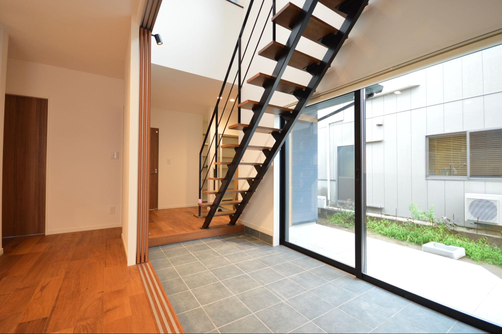 土間リビングは周囲よりも一段低く設定されるため、おしゃれで通気性の良い、開放感のあるデザインになります。また、室内と土間の素材の違いによって、視覚的な変化をもたらすことが可能です。