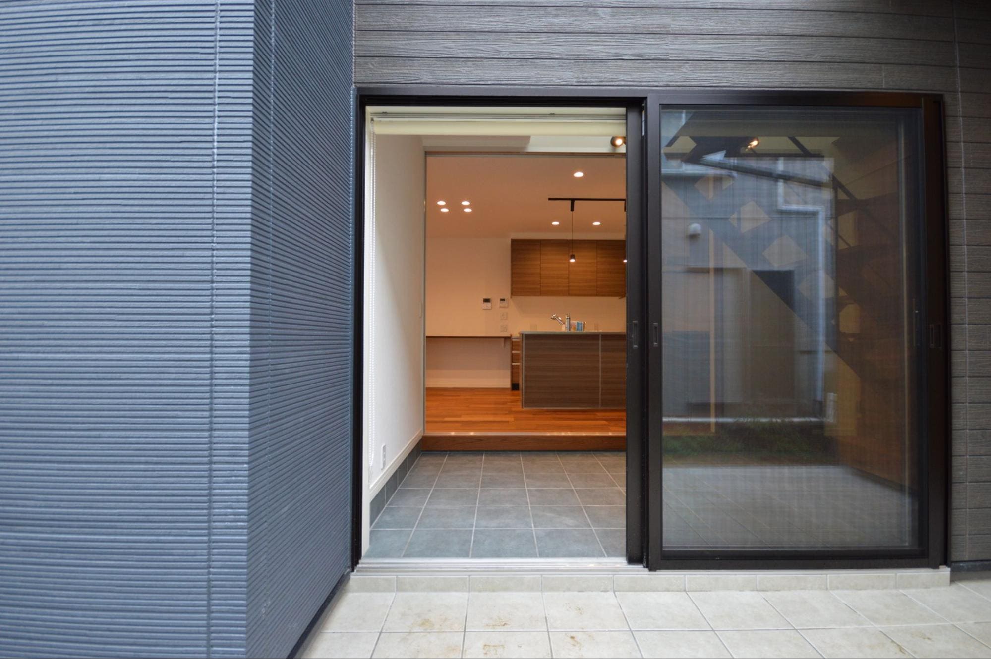 扉を開けばLDKと土間が広がり開放的な空間になりますし、冬場などの寒い時期は扉を閉めることで室内に外の寒気が入ることを防げます。
