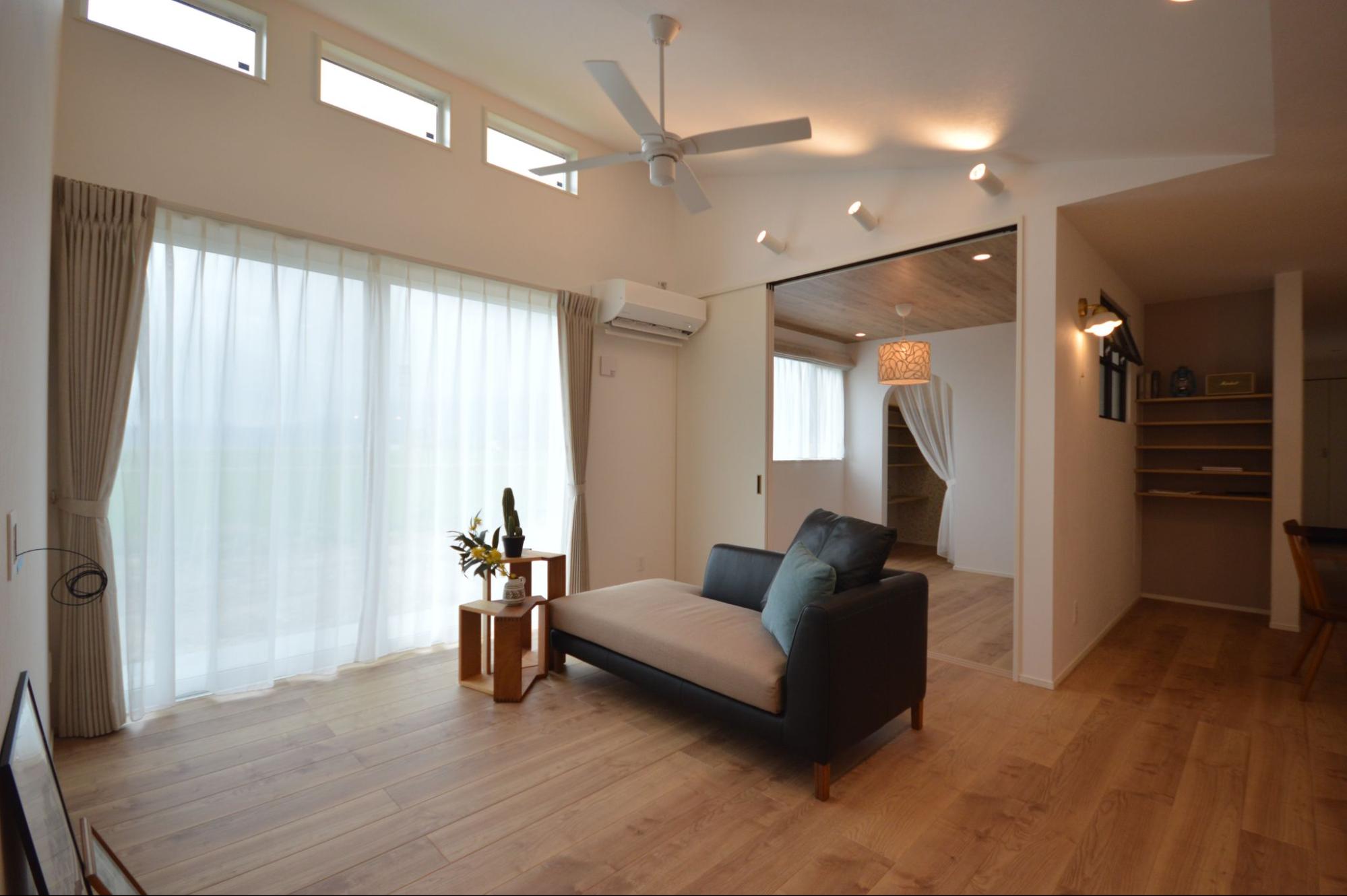 例えば小屋裏を活用し、勾配天井にすることで天井高を高くできます。さらに、高窓を設けて自然光を取り入れると、明るく開放的な空間を実現できます。