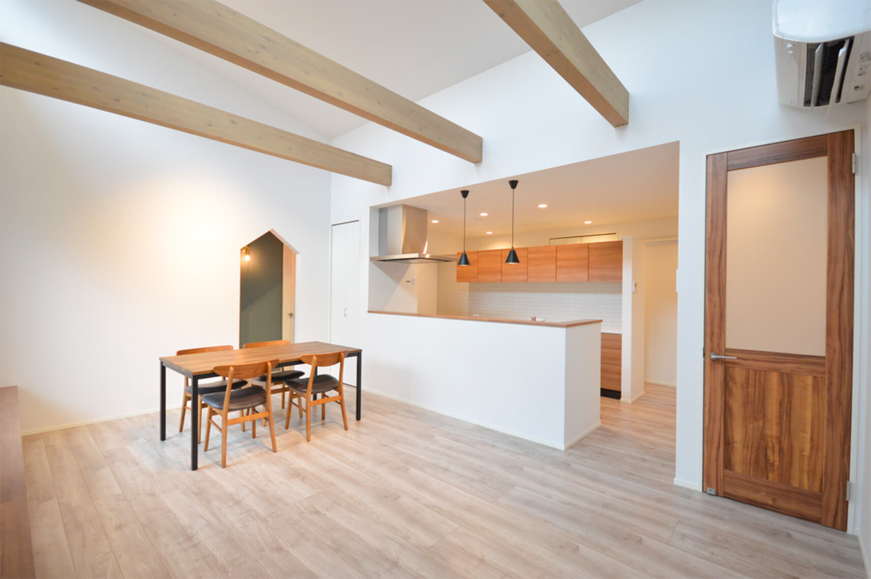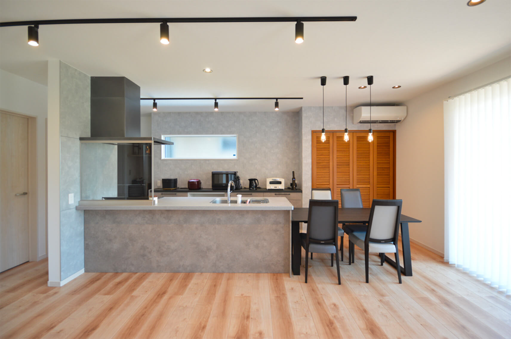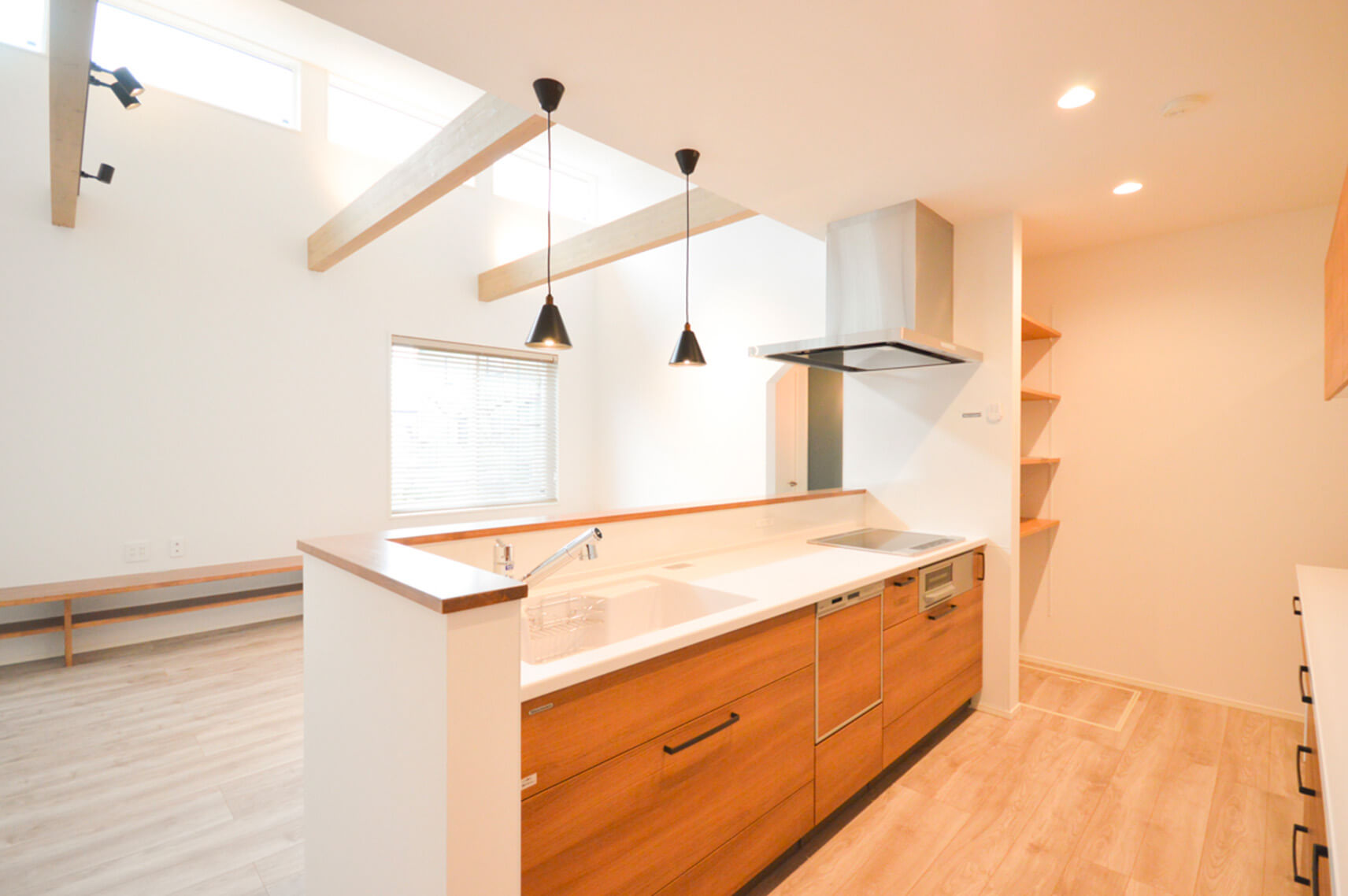 キッチン周りの動線や収納スペースの確保にも配慮し、快適で使いやすい間取りとなっています。施主様のこだわりを反映し、高い性能と品質を兼ね備えた家です。