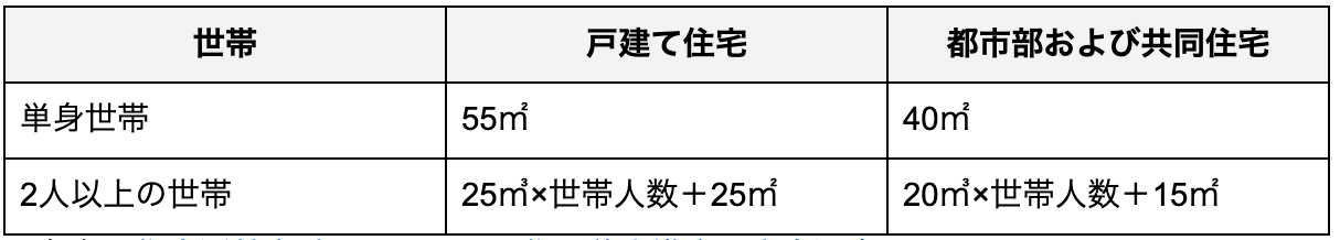家族が快適に暮らすためには、どのくらいの広さが必要なのでしょうか。その目安として、国土交通省では「住生活基本計画」に基づき、世帯人数に応じた居住面積水準を下表のように定めています。