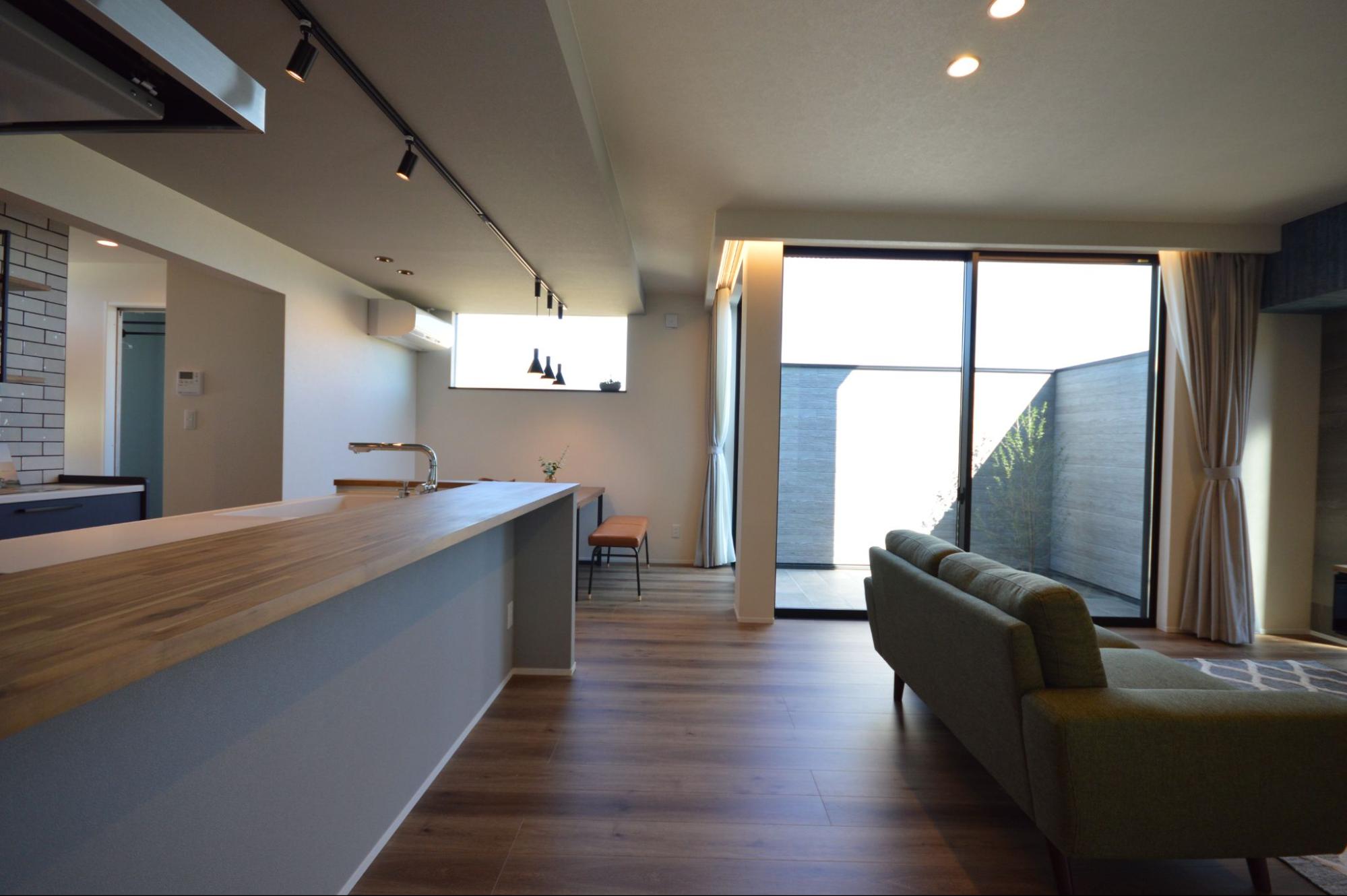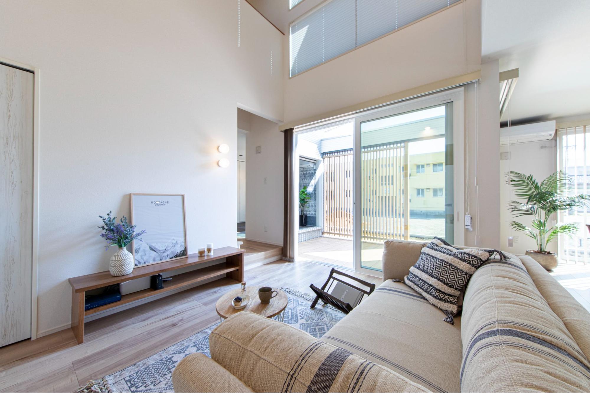 中庭のある家は視線が中から外に抜けるため、外との繋がりが生まれ、室内が開放的に感じられます。一般的にコンパクトな土地に家を建てる場合、室内が狭く感じられがちです。しかし、中庭を作ると、視線が遠くに抜けて室内が広く感じられます。