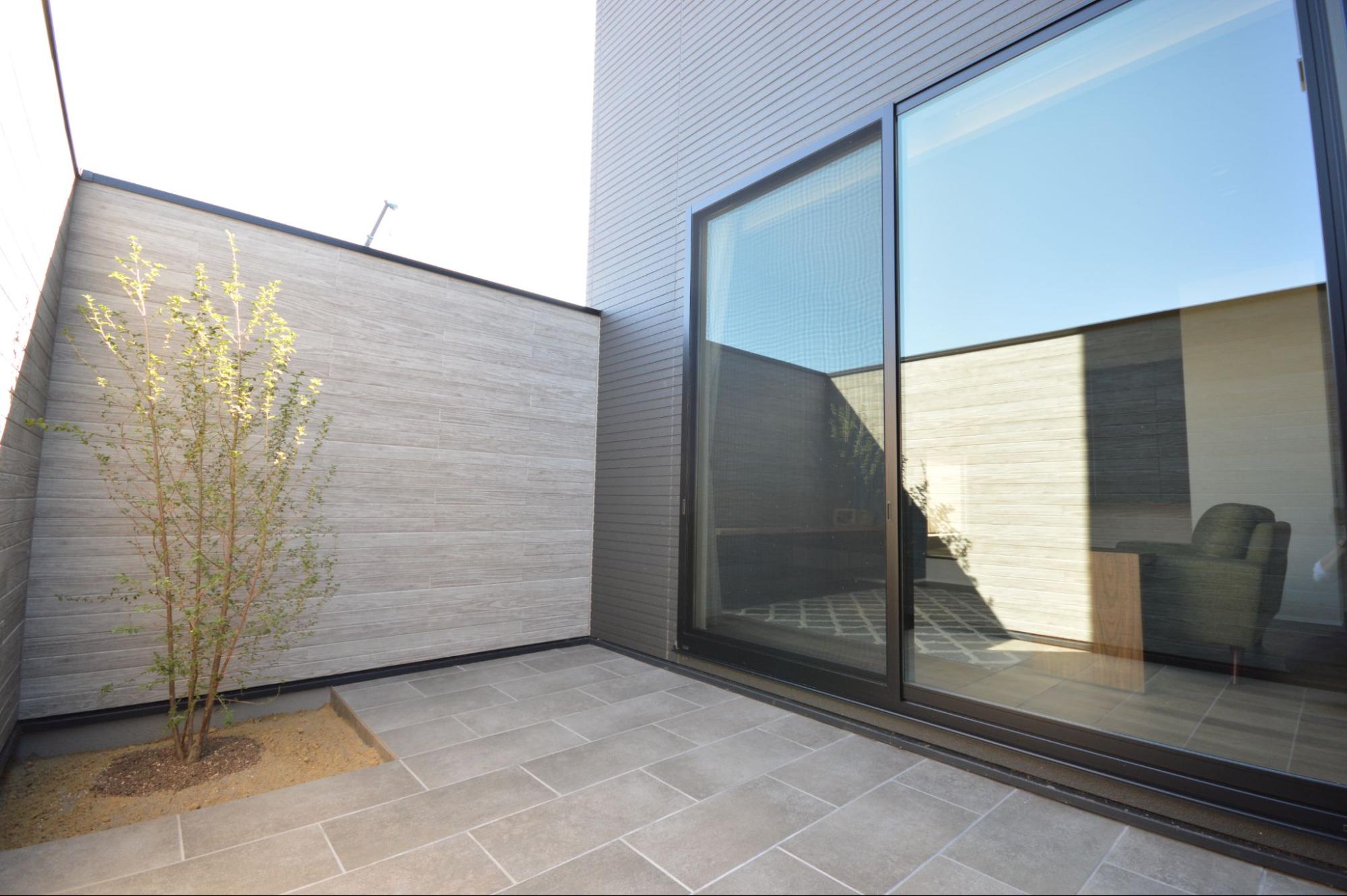 植栽も植えて緑を感じる中庭になっています。プライバシーを確保しながら、ちょっとした憩いの場としても活用可能です。