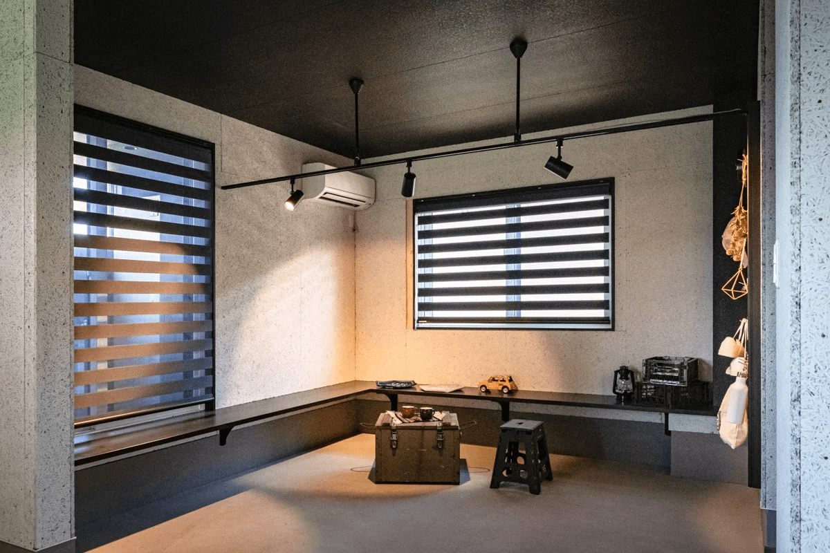 DIY愛好家の方には、広々とした作業場として活用可能。工具や木材を整理整頓して収納し、集中して作品作りに没頭できます。