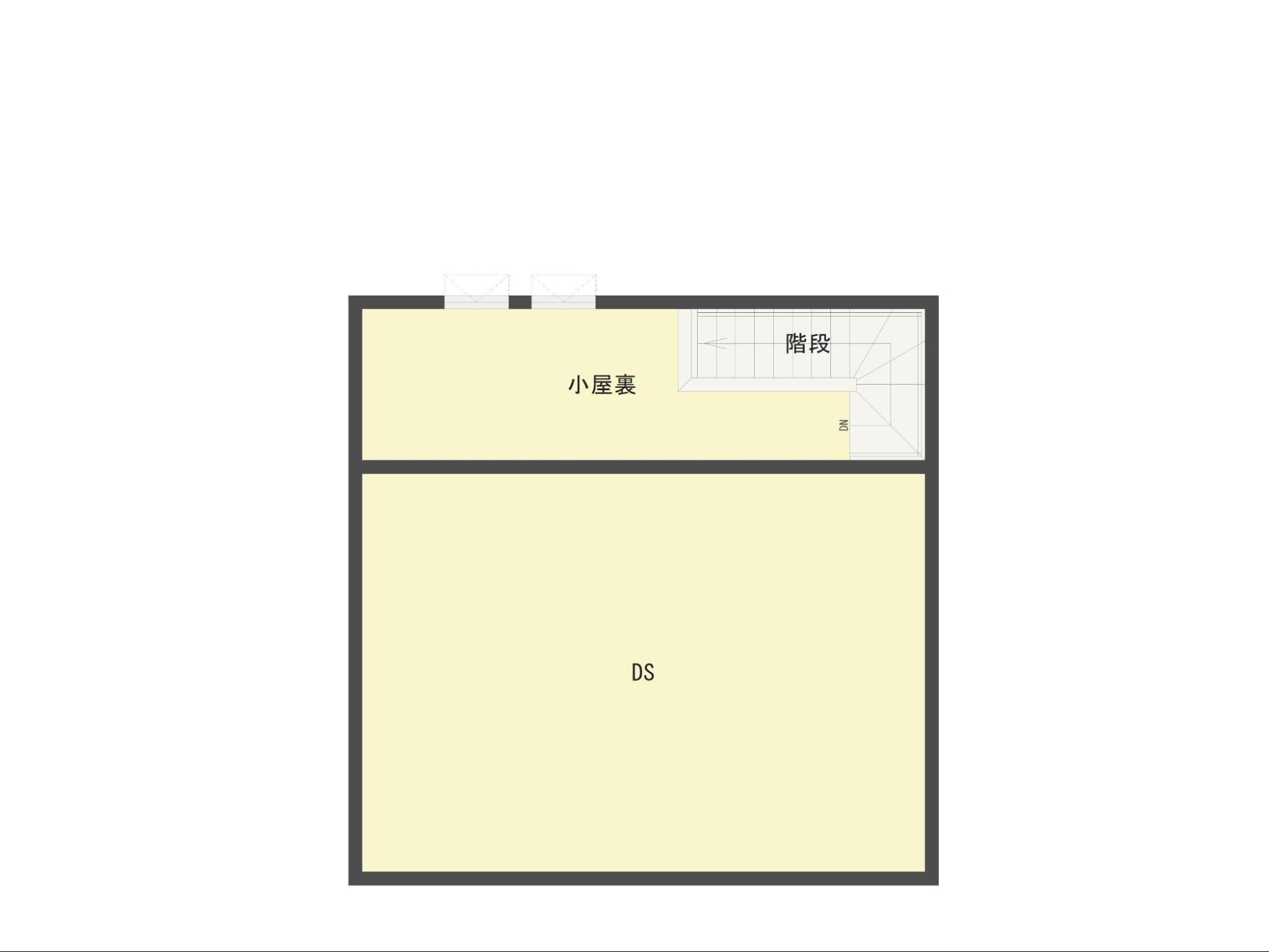 こちらの事例は平屋で1階部分の上に小屋裏収納を設けた事例です。小窓があり、圧迫感がなく、採光・通風も確保されています。