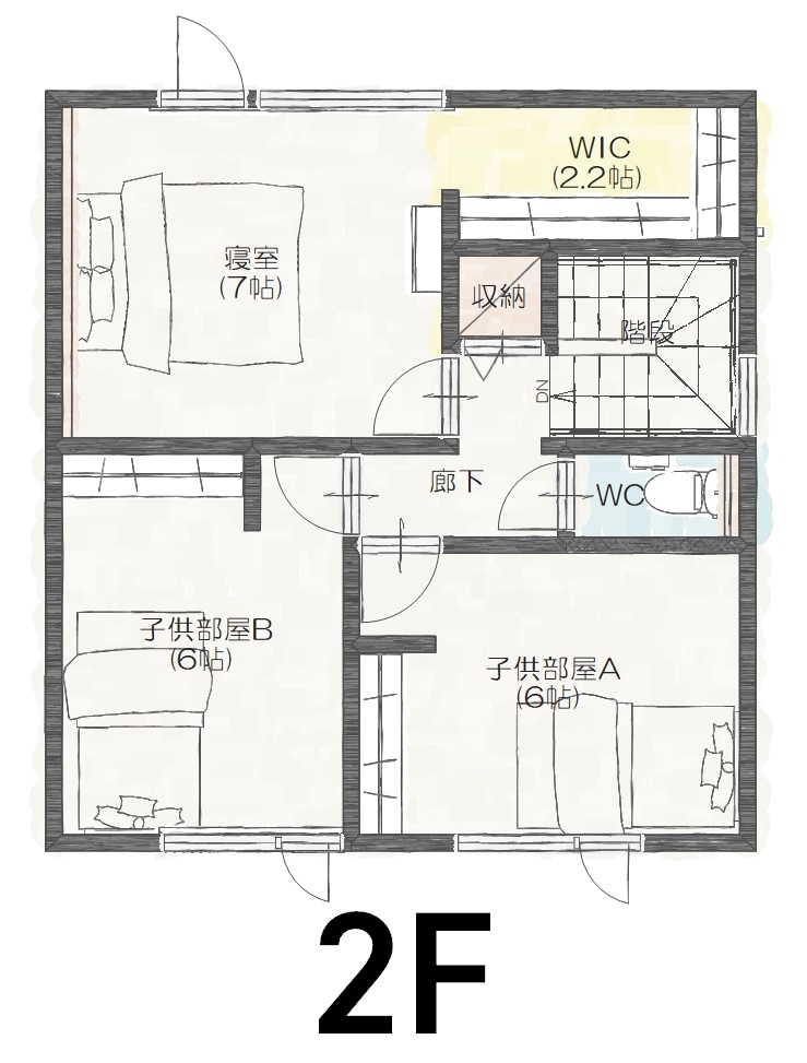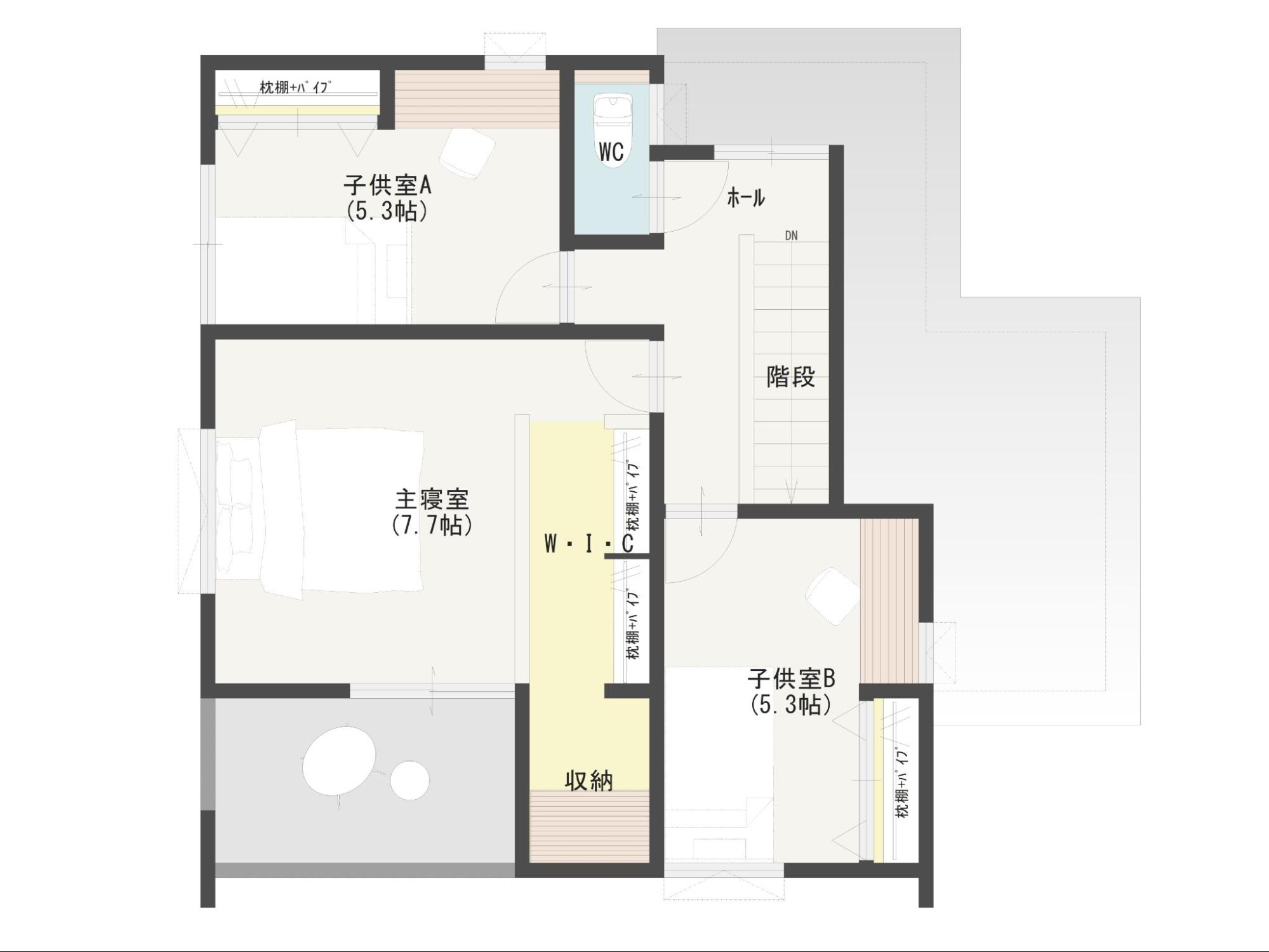 例えば、子供部屋にはあえて収納を設けず面積を広くし、収納は共有のファミリークローゼットを使用するのも1つの方法です。
