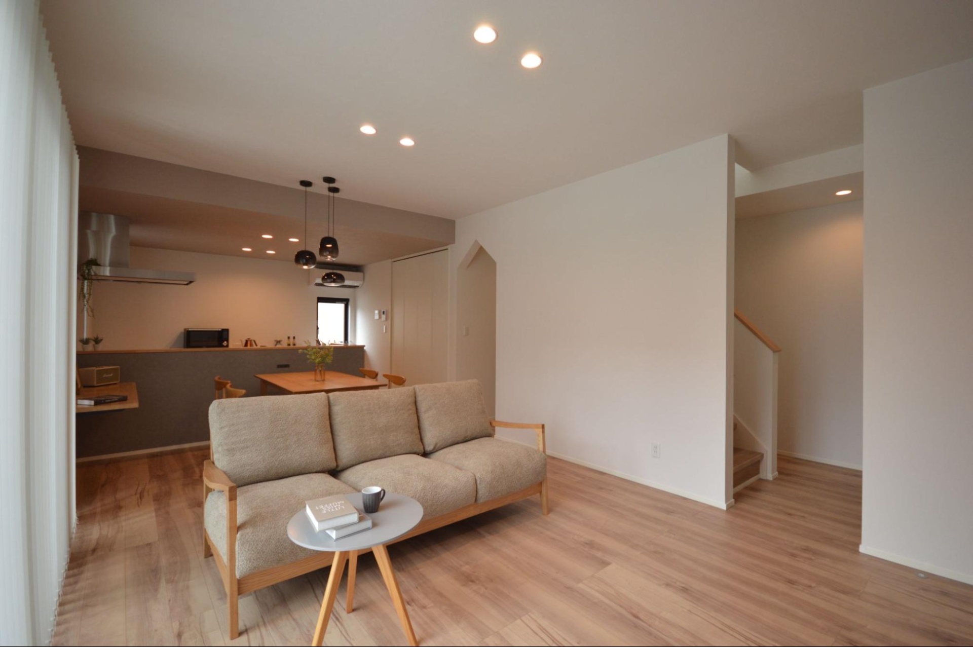 こちらの事例は、34.31坪の空間の中で、自然素材のぬくもりを感じられる、ナチュラルモダンな建売住宅です。