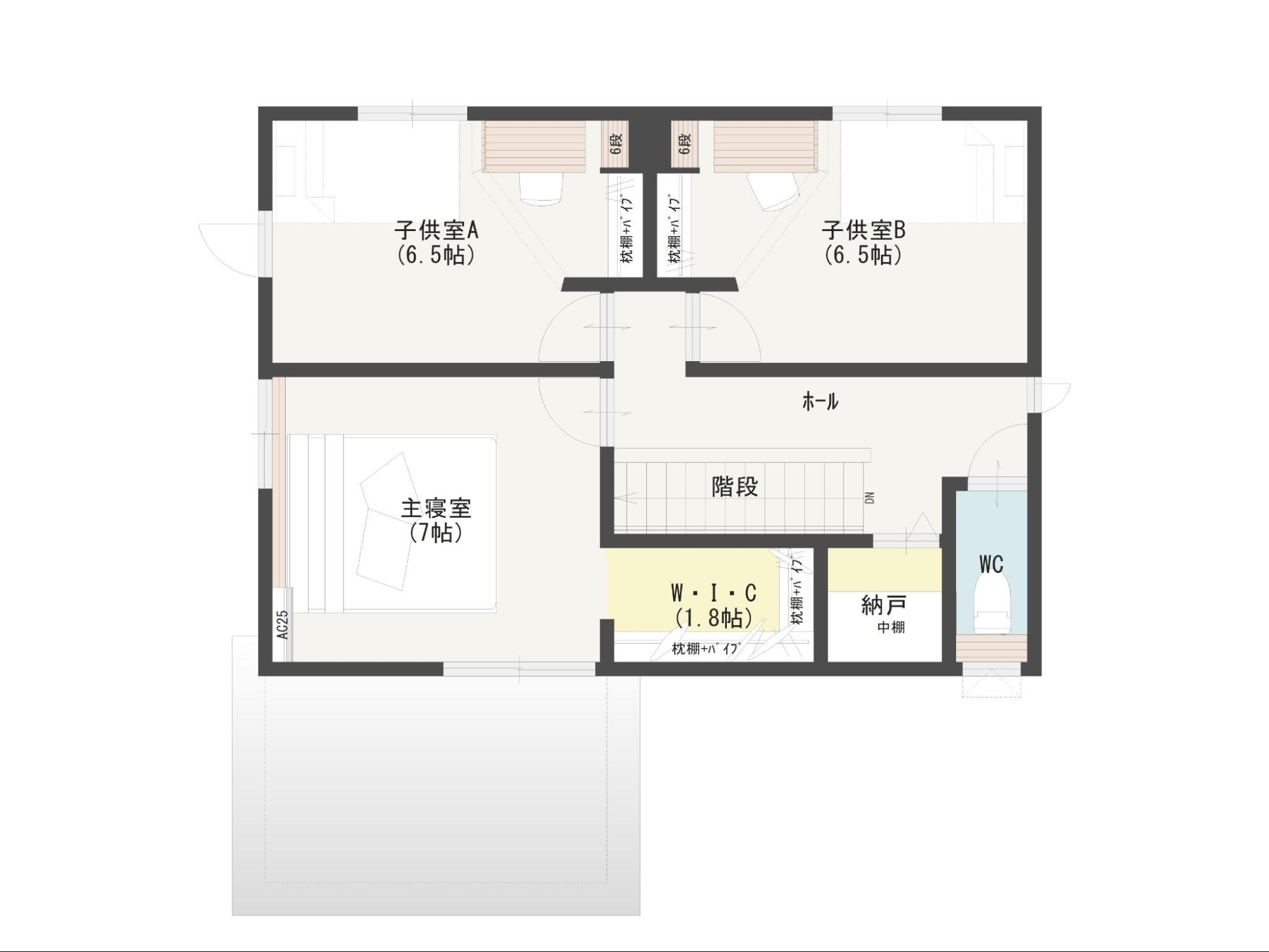 こちらの注文住宅は、1階に寝室を配置し、半平屋のような利便性を追求した間取りが特徴です。