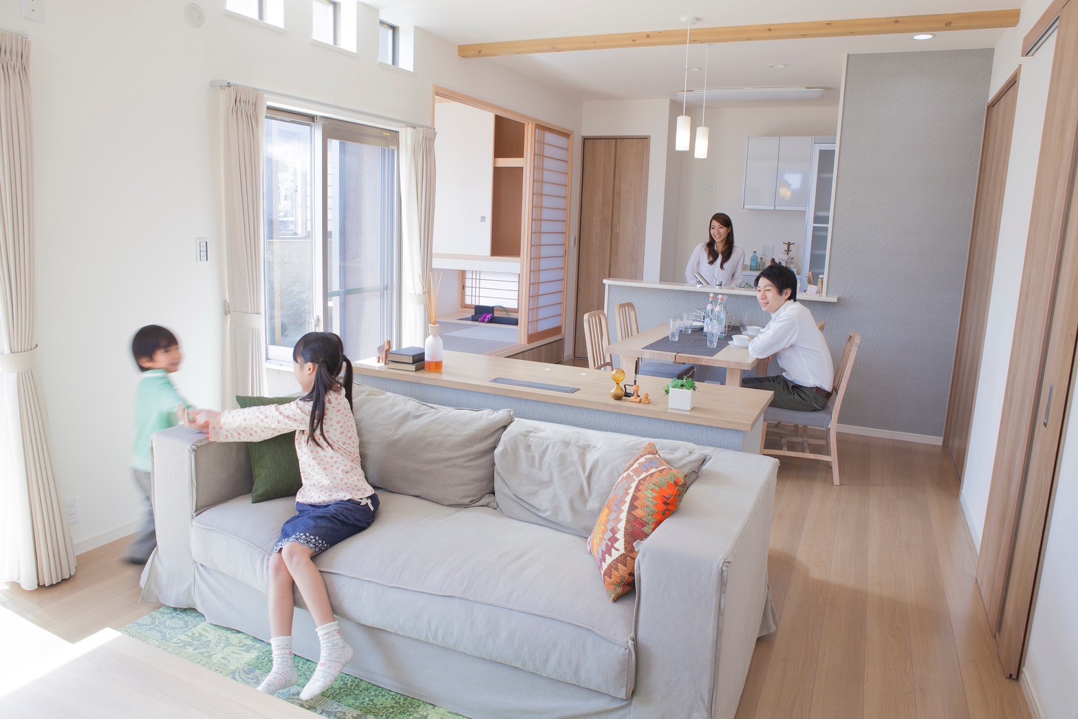 - 家族全員がリビングにいても適度な距離感で過ごせる