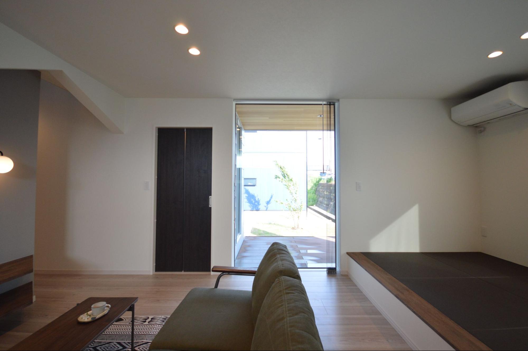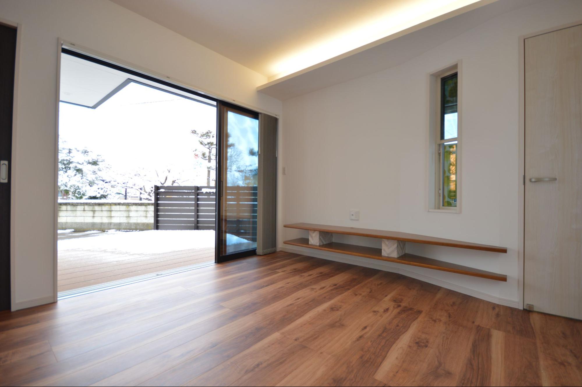 床の高さが揃うことで、屋内外の境界がなくなり、視覚的に広々と感じられる点も魅力。自然を身近に感じながら、のびのびと過ごせる空間です。