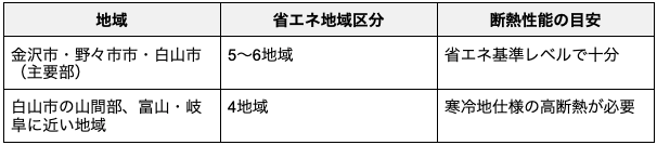 石川県の気候は、雪は多いものの寒冷地ではないため、地域ごとに適切な断熱・気密性能を選ぶことが重要です。