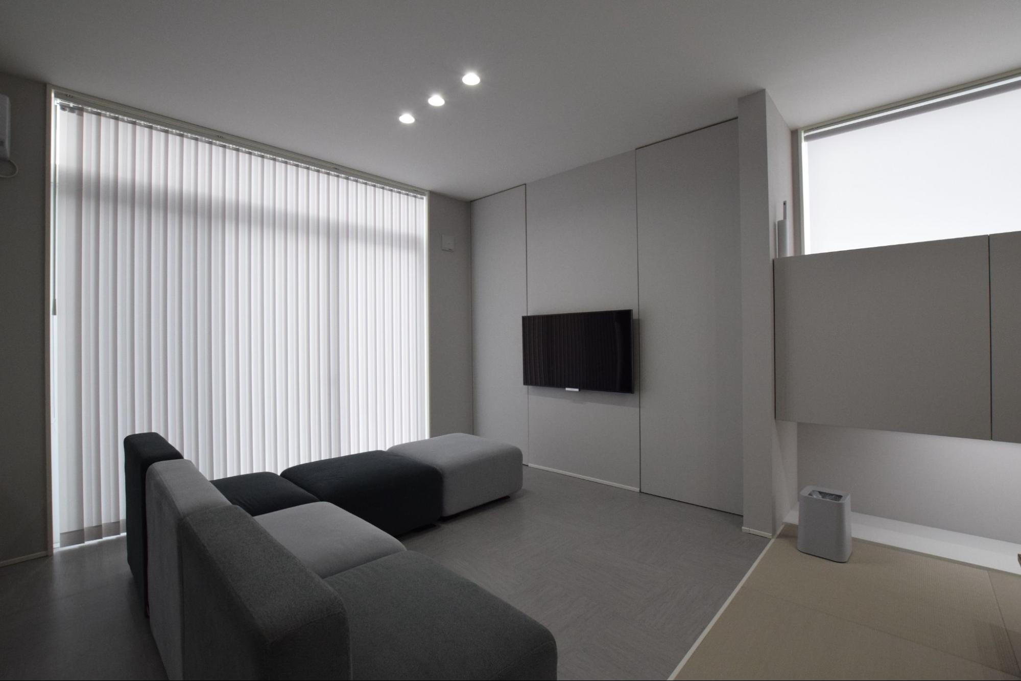 リビングエリアでは、壁一体型の収納を採用し、生活感を徹底的に抑える工夫を施しました。余計なものが目に入らないことで、常に整った美しい空間を維持でき、高級感のある雰囲気を演出します。