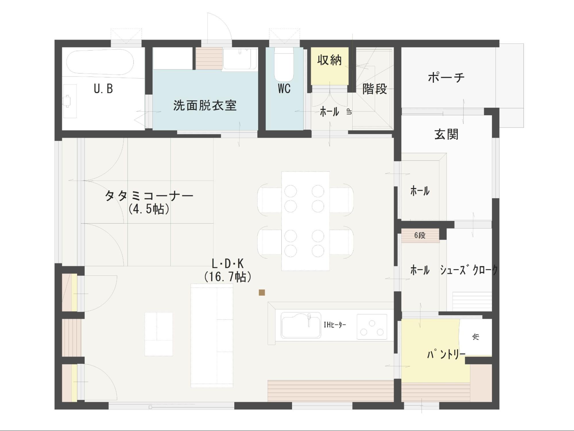 こちらの住まいは、広い玄関と土間スペースを活用した開放的な設計が特徴です。