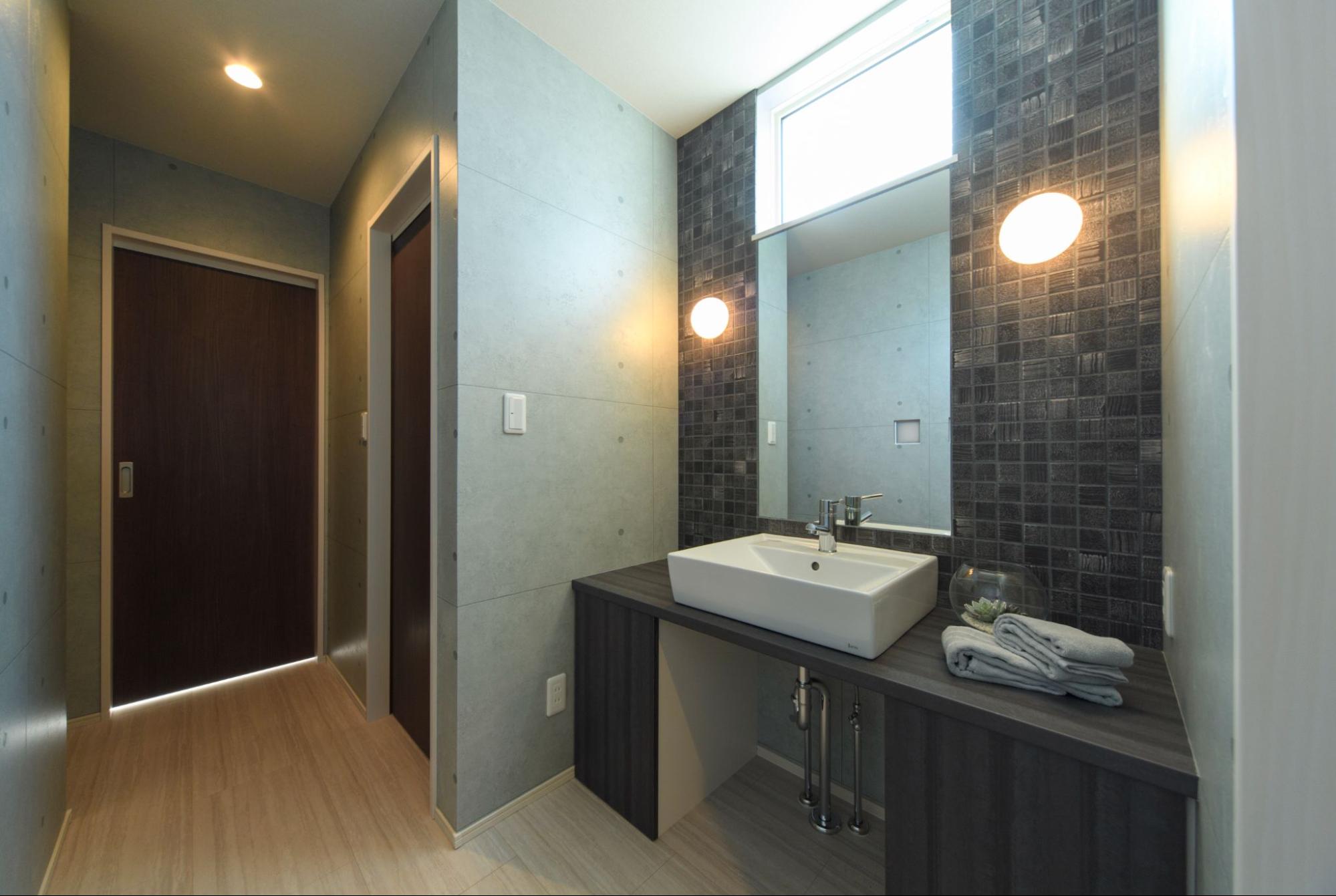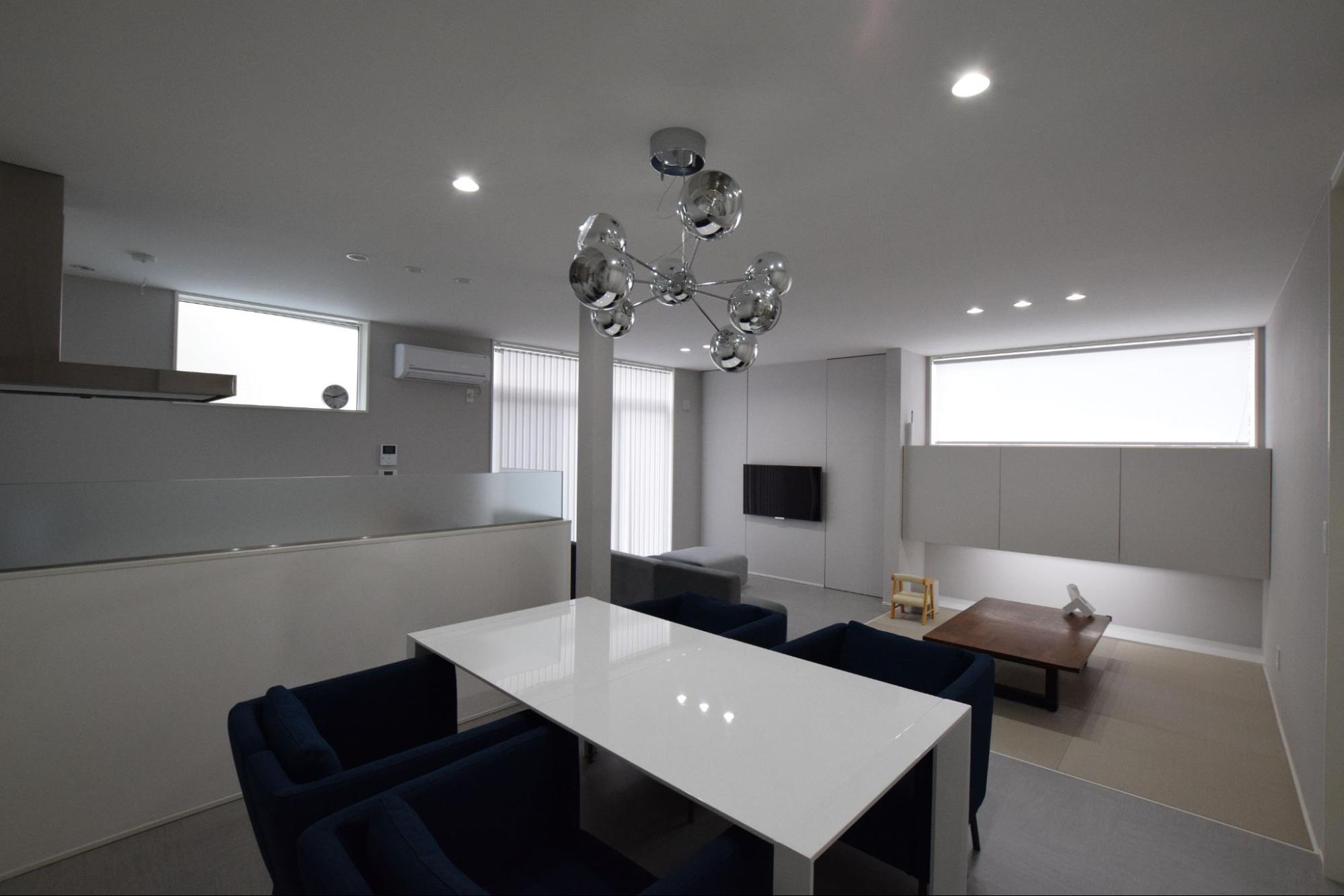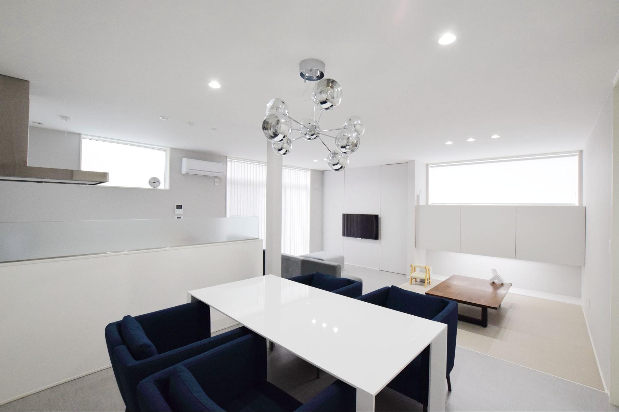 家庭的な雰囲気を避け、無機質でシンプルなデザインと高級感のある照明を組み合わせることで、洗練された空間を実現しました。