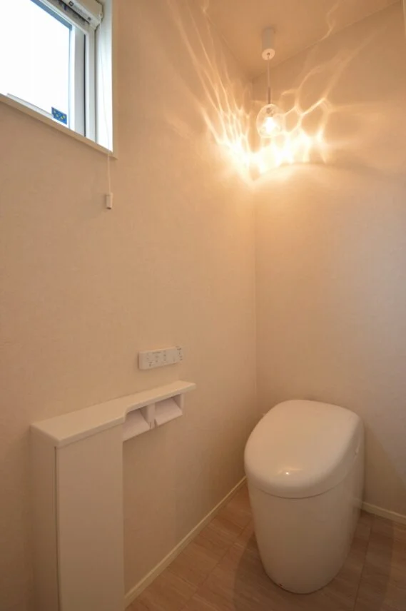 スタディカウンターのある窓辺や、キッチンの隠せるゴミ箱配置など、細やかな配慮も魅力。照明器具が空間を演出するトイレや明るい玄関など、日常を心地よくする工夫が詰まった住まいです。