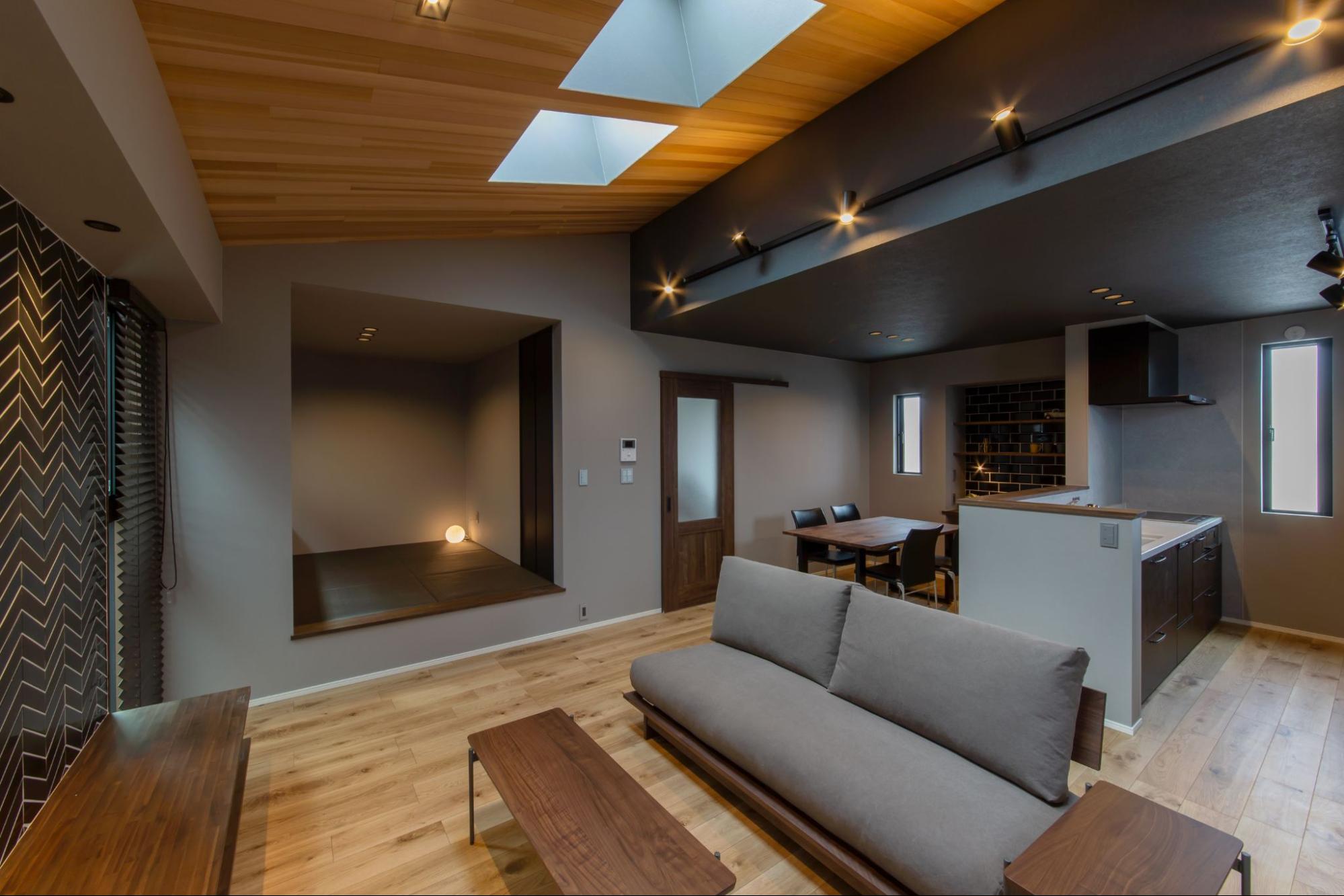 例えば、ナチュラルな木目調でまとめた内装に、あたたかみのある間接照明を組み合わせると、落ち着いたリビングになります。