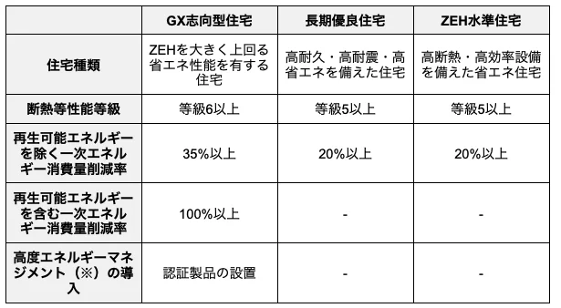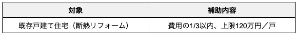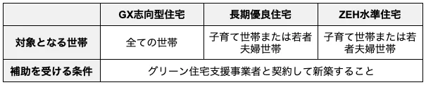 補助金の対象となるのは、下表の性能を満たした住宅です。