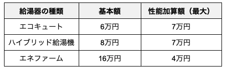 給湯省エネ2025事業の補助金は、条件に応じてそれぞれ定額が設定されています。