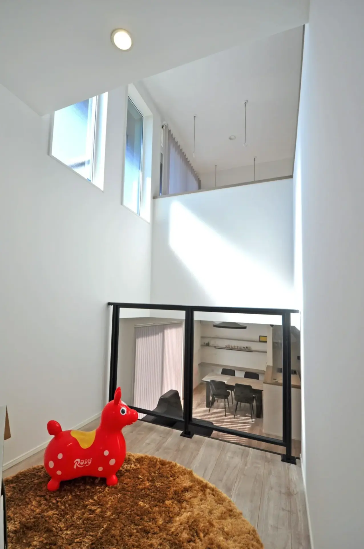 リビングの上は吹き抜けとなっており、空間全体が明るく広く感じられます。