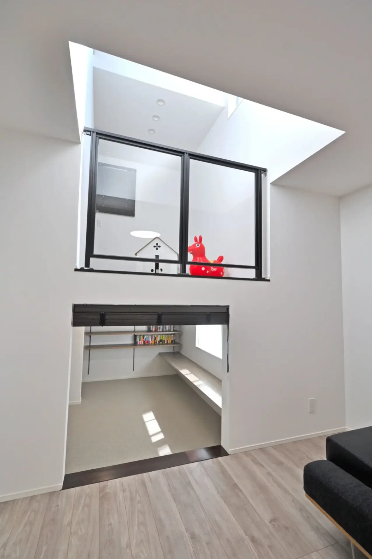 さらに、スキップフロアを取り入れたことで、趣味や読書を楽しめる、隠れ家スペースが誕生。スキップ下には収納もあり、家族の居場所と便利さを両立した住まいです。