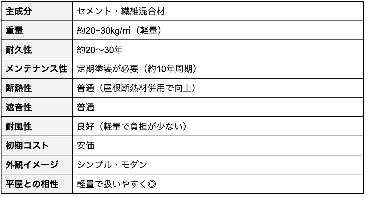 スレート屋根は、セメントと繊維素材を主成分とした軽量の屋根材です。デザイン性に優れ、比較的安価で施工しやすいことから、住宅で広く採用されています。重量が軽いため地震時の負担が小さく、平屋にも適した素材です。経年劣化により塗装の再施工が必要になるため、定期的なメンテナンスを行うことで長持ちします。