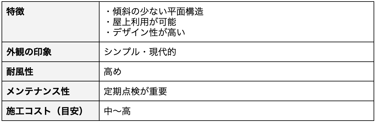 平屋の屋根は、外観デザインだけでなく、住まいの快適性や耐久性にも関わる重要な要素です。以下では、多くの平屋で採用される代表的な屋根形状の種類とそれぞれの特徴を紹介します。
