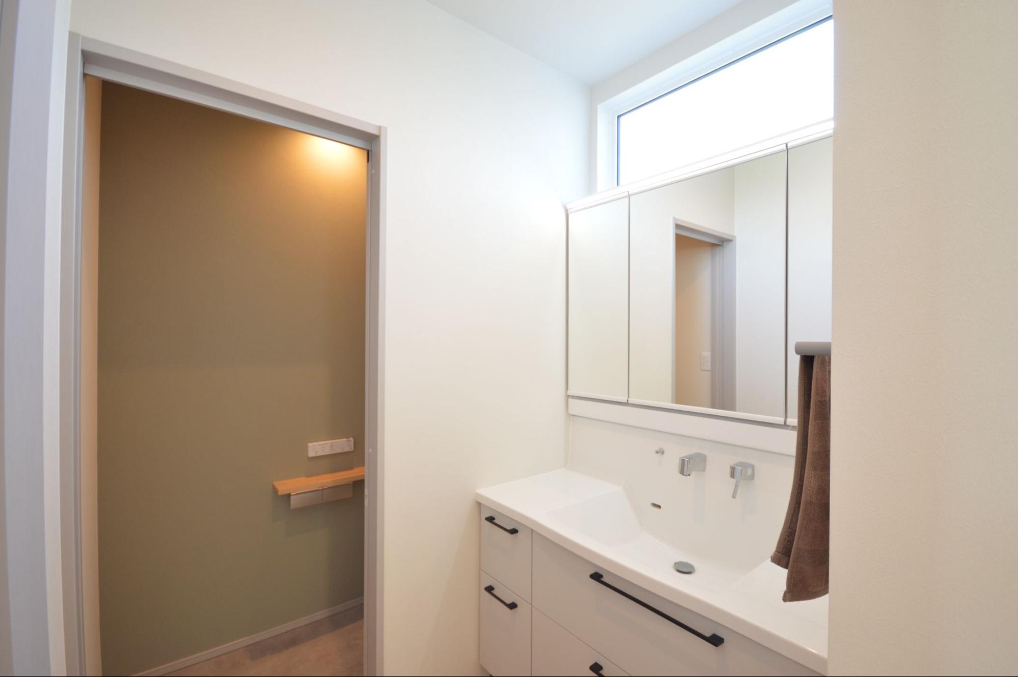 独立洗面台はミラーキャビネットになっており、日常で使う消耗品を収納することが可能です。