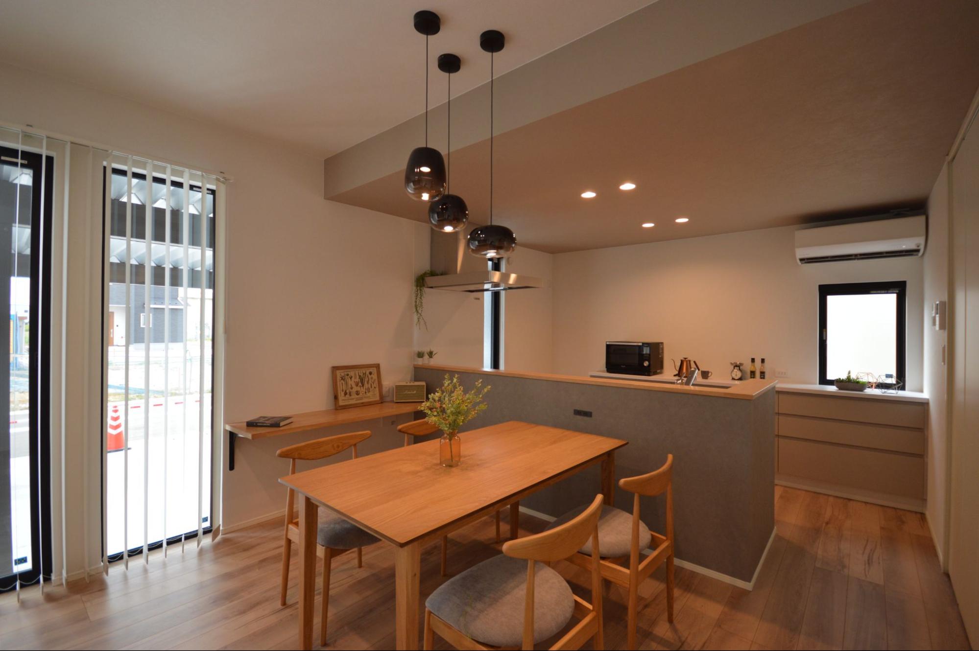 アクセントになるダイニングの照明です。窓側には、スタディカウンターを設置しています。