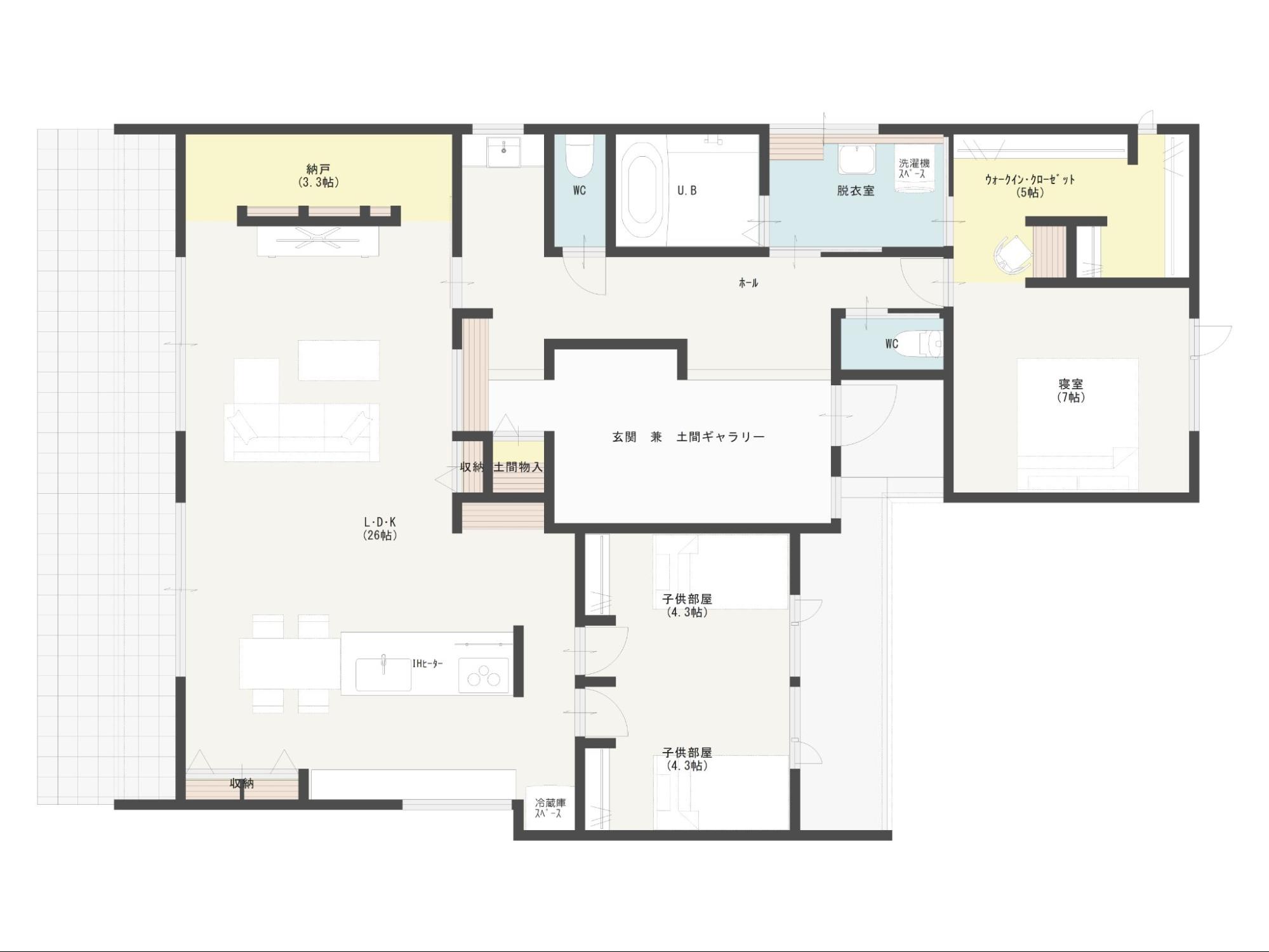 そこに玄関や収納を置くと、リビングの窓を広く取れず、思ったより明るさが感じにくくなります。