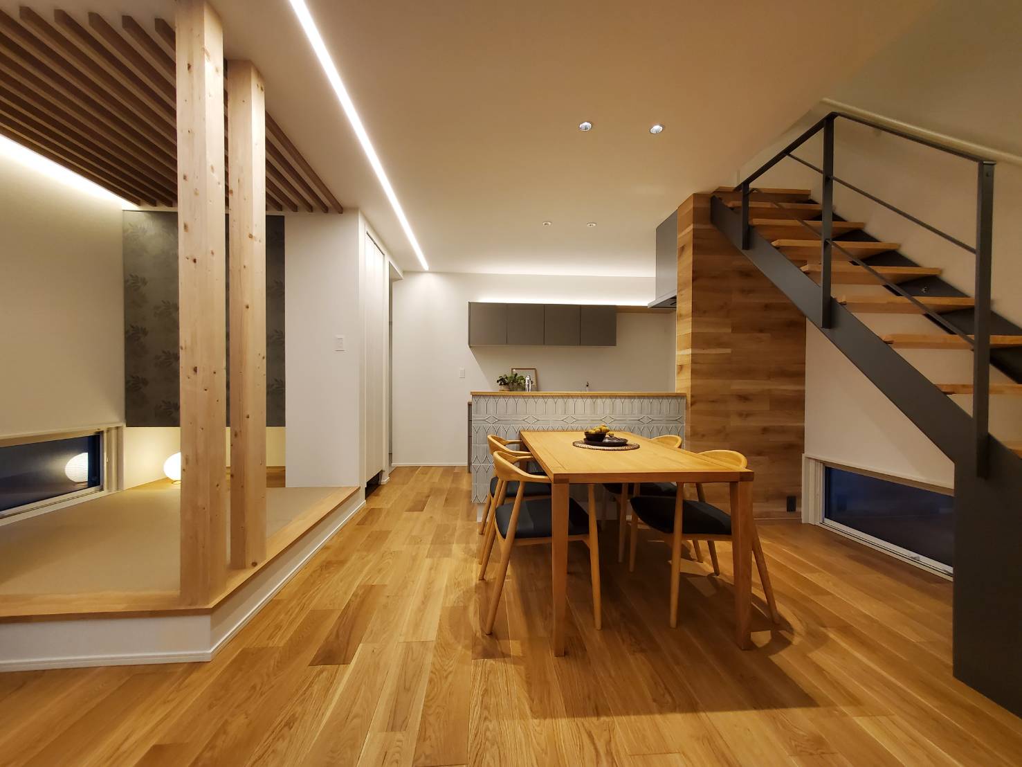 また、室内には和のテイストを取り入れた畳スペースを設けており、家族がほっと一息つける場所になっています。