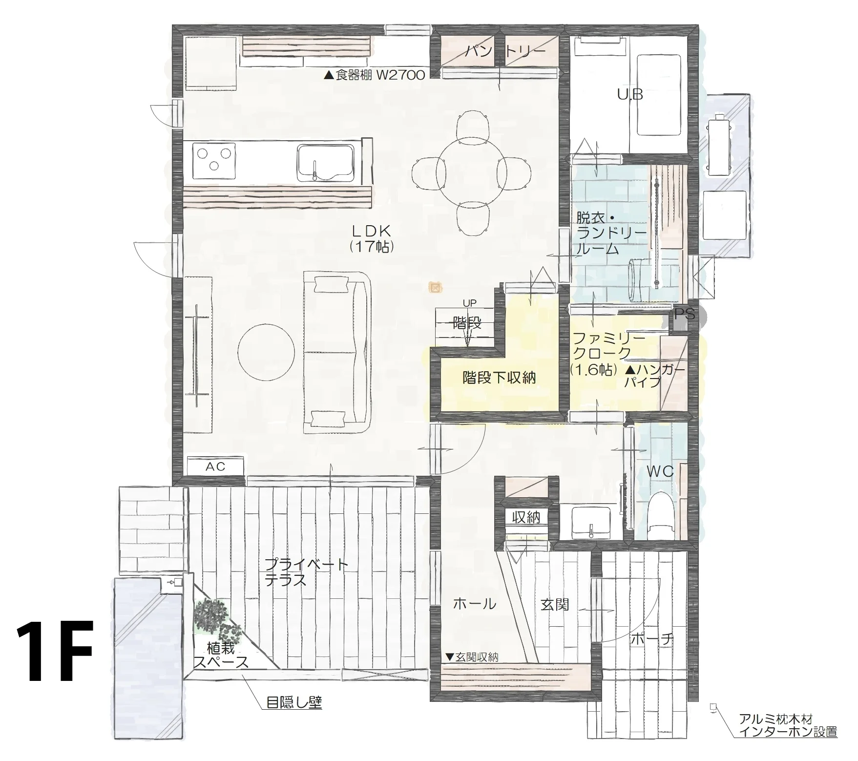 ■ パントリー、階段下収納、ファミリークローク、2階ホール収納など、欲しい場所に最適な収納スペースを確保しました。