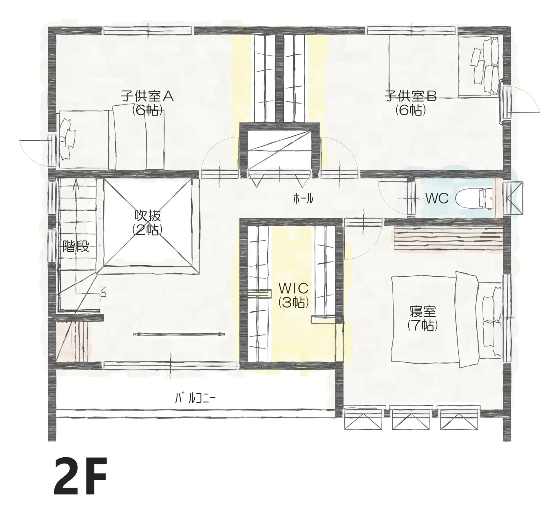 ●2Fのフリースペースは室内干しができるサンルームとしても大活躍!