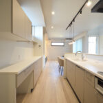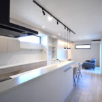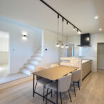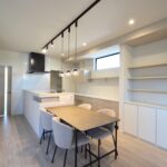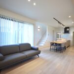 【LDK】19帖以上の広々としたLDK。北側の壁一面「下がり天井」仕様にし、空間にアクセントを付けました。