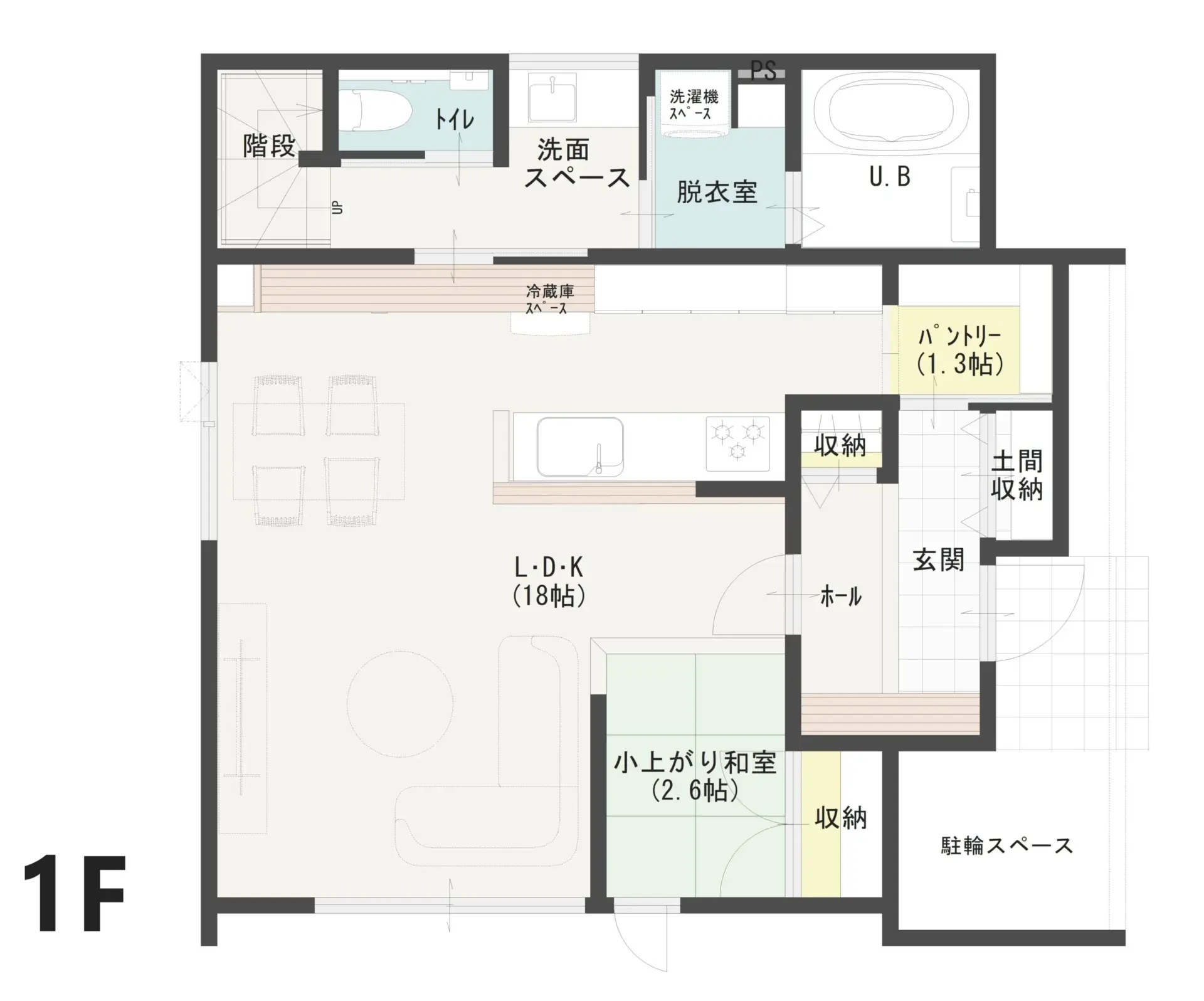 ・玄関から直結の大型パントリーで帰宅後の食品の整理も楽々!