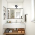 ・30坪の家に、オシャレな造作TVボードや造作洗面台、天候に左右されないランドリールームなど、暮らしを便利にする設備が充実。