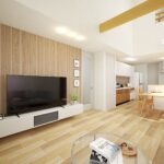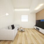 ・約20帖分のLDK。TVボード、洗面台はオリジナル。