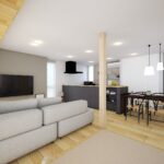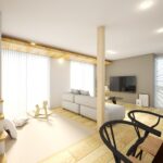 壁掛けテレビ対応の壁でリビング周りがスッキリ・シームレス。テレビがインテリアの一部に。