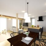 畳コーナーと合わせて22.6帖の大空間!リビング南側は木目調の「折り下げ天井」+「間接照明」仕様で特別な時間を過ごせます♪