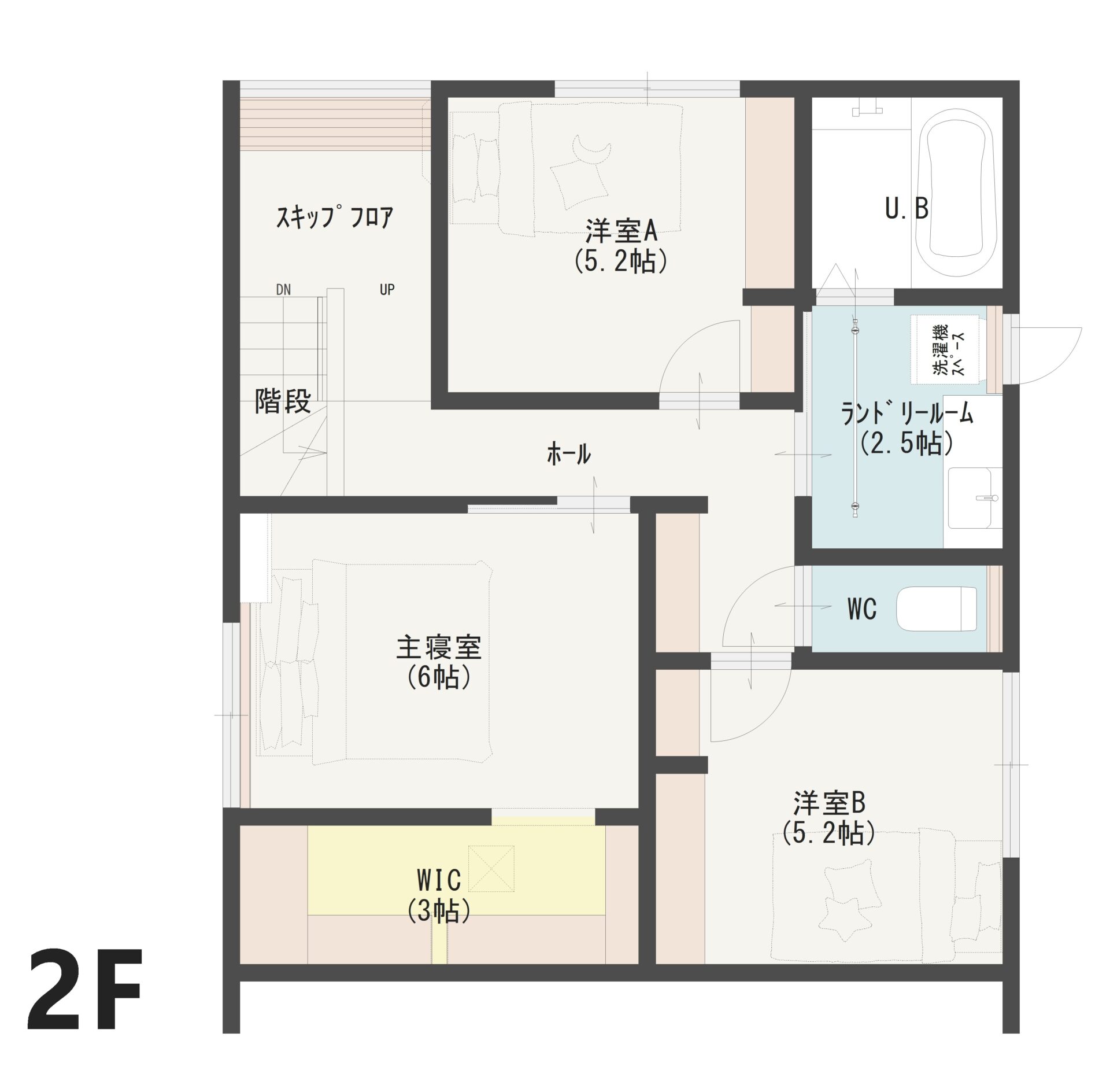 浴室・ランドリールームを2階にまとめた、共働き世代に嬉しい効率的な住まいです。