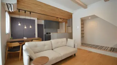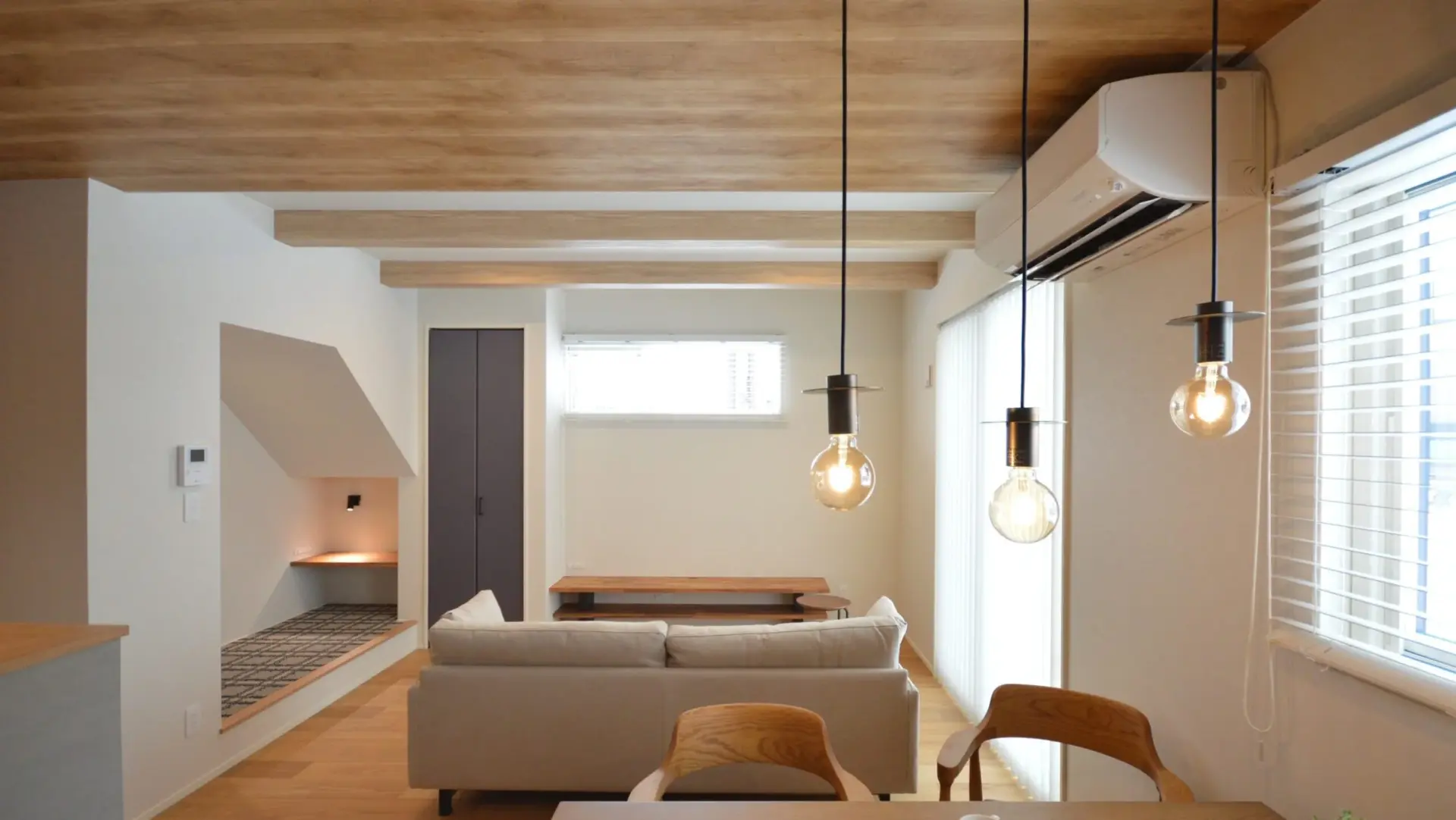 ✅リビング上部の折上天井+梁あらわしで特別な空間を演出