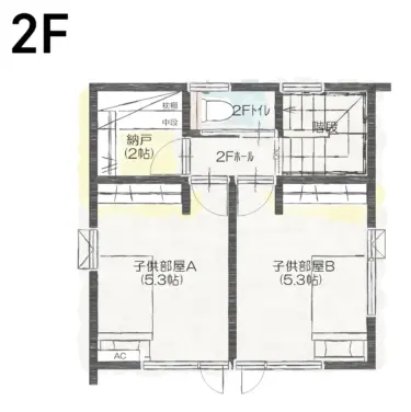✅2階は子ども部屋2つ、納戸、トイレだけのシンプル設計