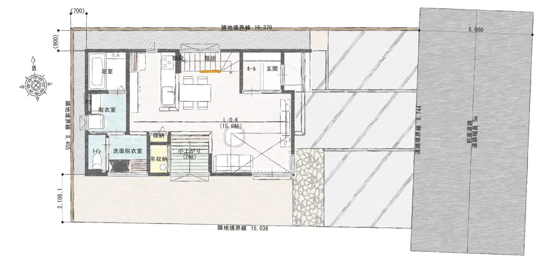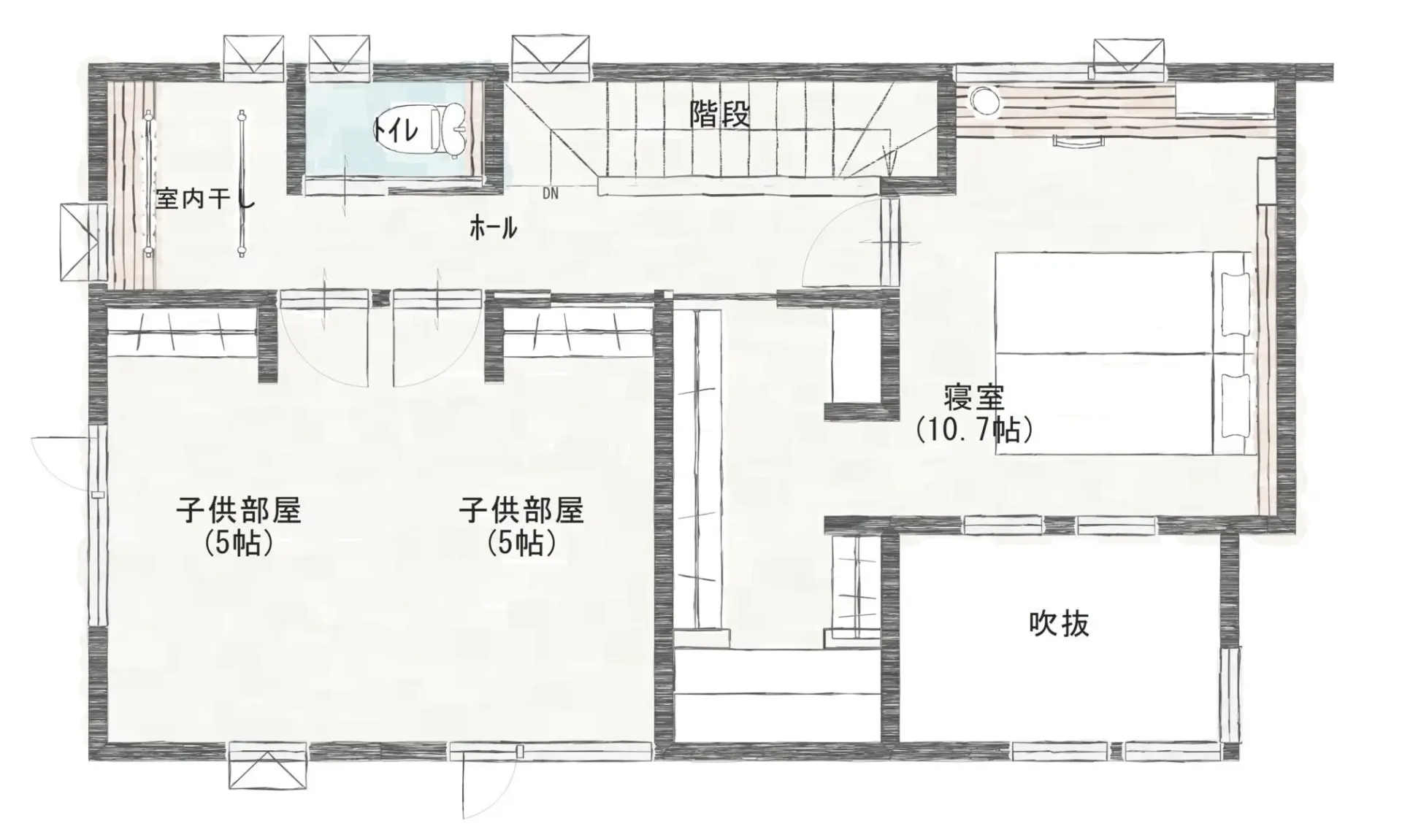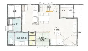 隣家が近い土地でも明るく開放的に過ごせるように工夫されており、都市部でも建てやすい間口5.46m(奥行9.91m)のプラン。