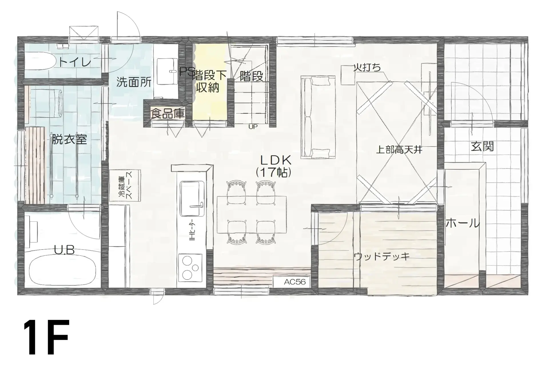 ゆとりある高さがもたらす開放感!家族が自然と集まる、心地よい空間に。