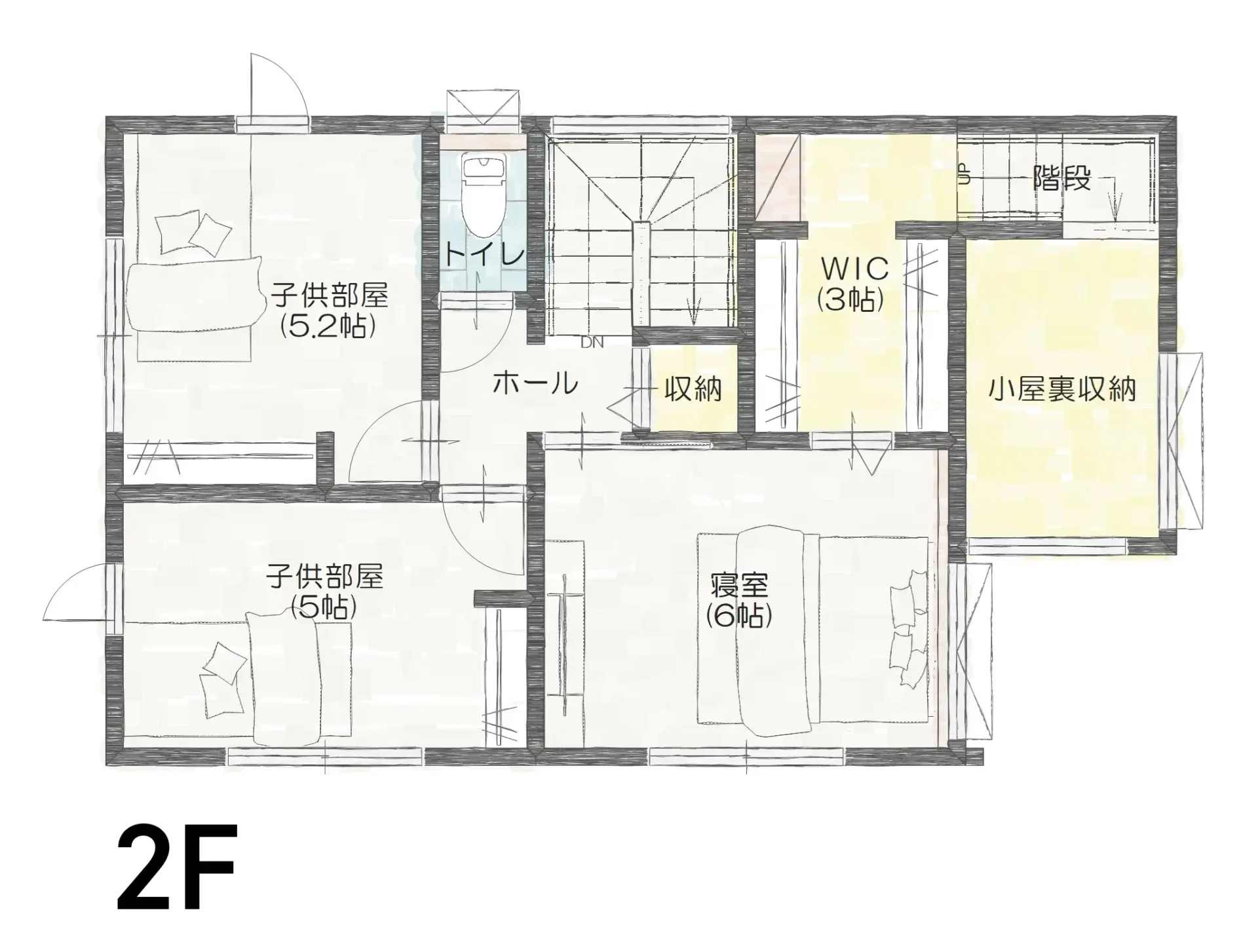 玄関・パントリー・階段下・2Fホール・ウォークインクローゼット・小屋裏など、使う場所の近くに収納を配置。