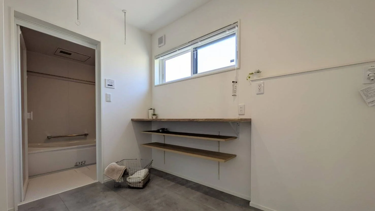 脱衣室・洗面台・玄関には、家族が並んでも窮屈さを感じない広さを確保。