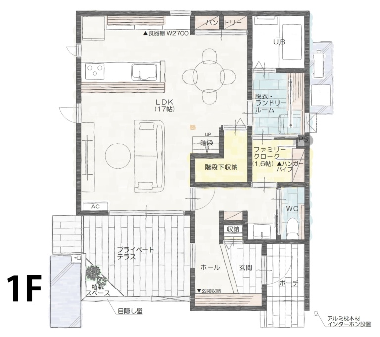 家族で使えるファミリークロークや夫婦で分けられる寝室収納など、収納計画もばっちり♩