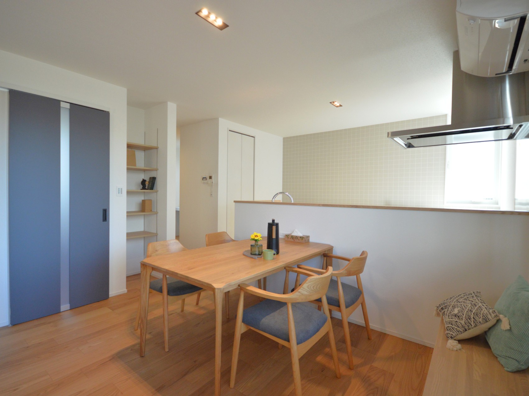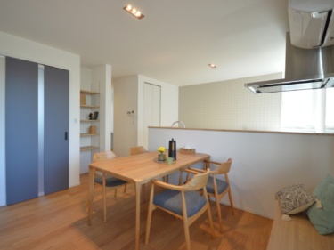リビングからダイニングにかけて設けたベンチカウンターは、空間を広く見せる視覚的な効果があり、くつろぎやすさもアップ🌟